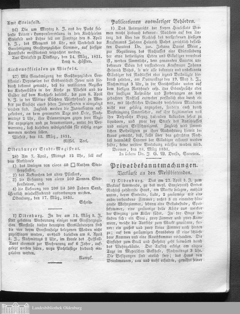 Oldenburgische Anzeigen. 1826-1960