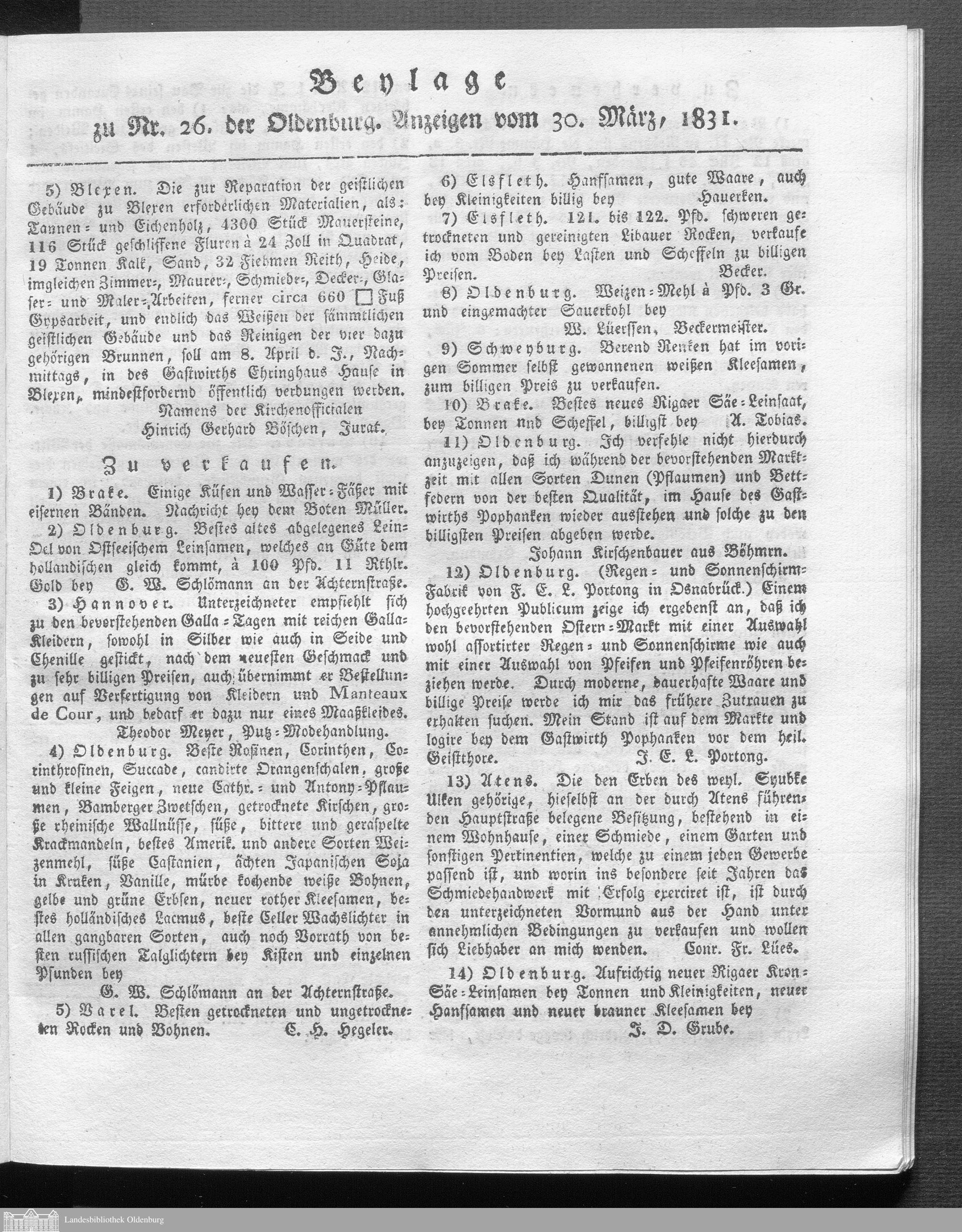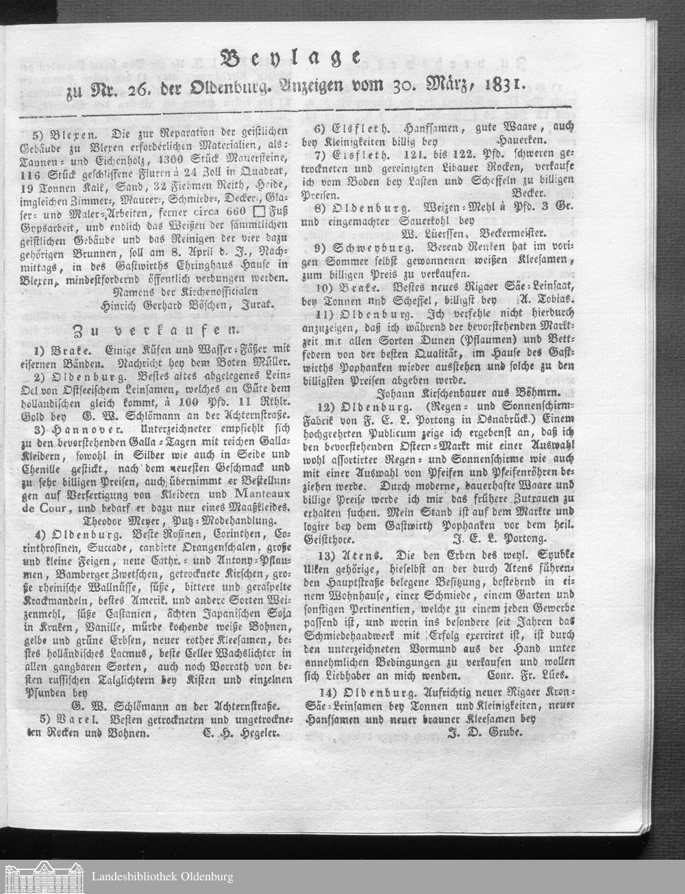 Oldenburgische Anzeigen. 1826-1960