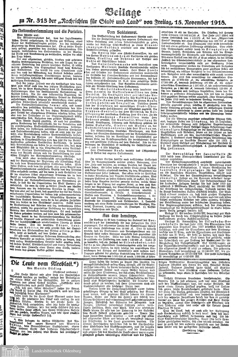 Nachrichten für Stadt und Land. 1866-1938