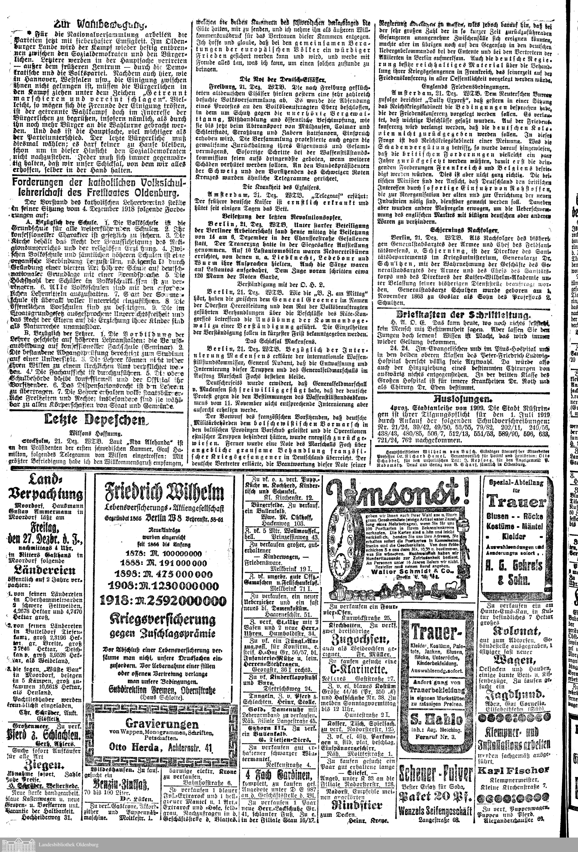 Nachrichten für Stadt und Land. 1866-1938