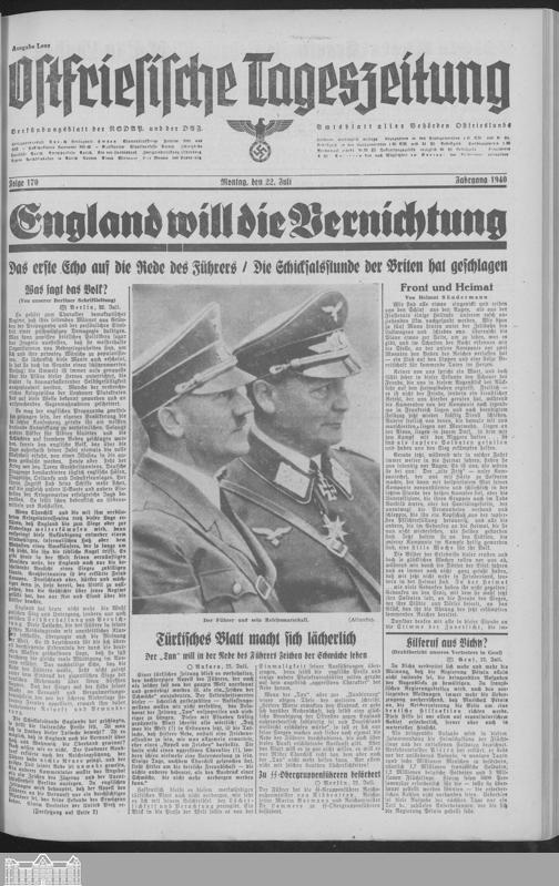 Ostfriesische Tageszeitung. Ausgabe Leer. 1938-1942