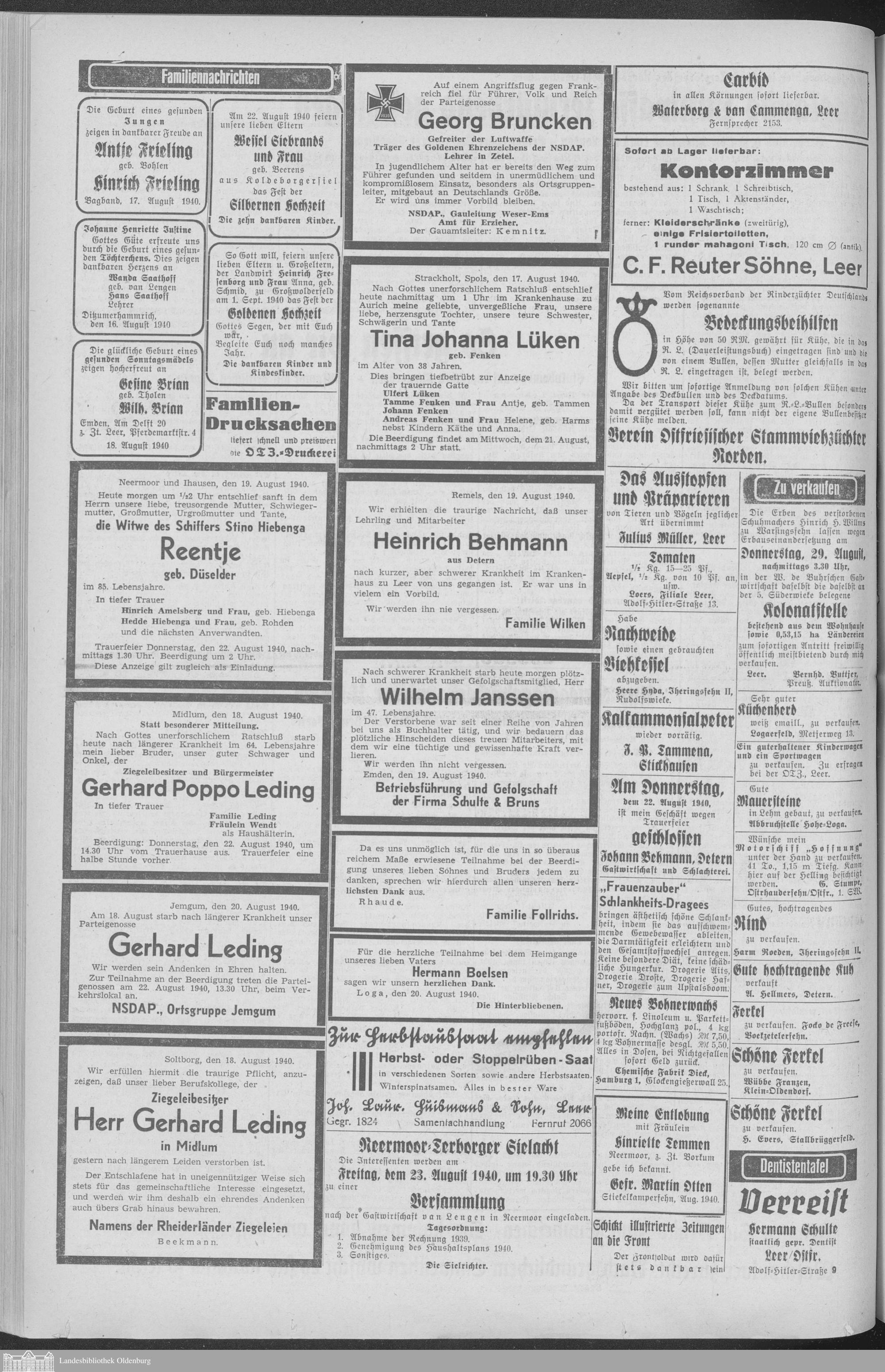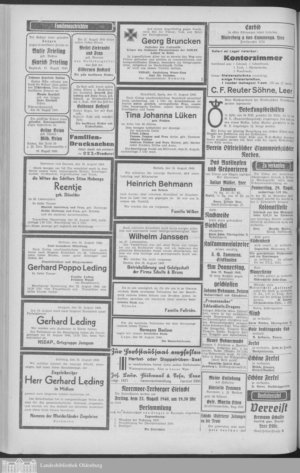Ostfriesische Tageszeitung. Ausgabe Leer. 1938-1942