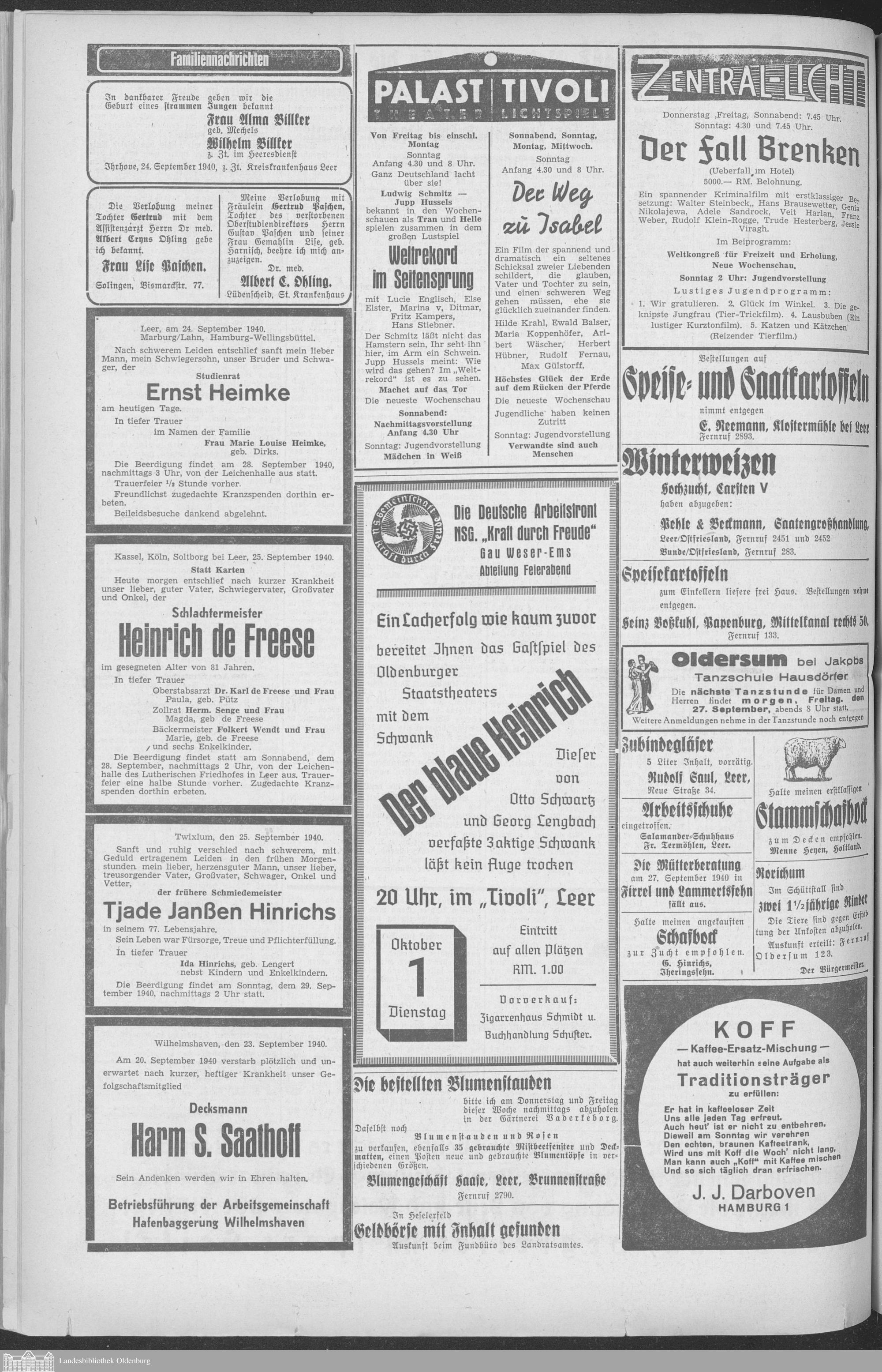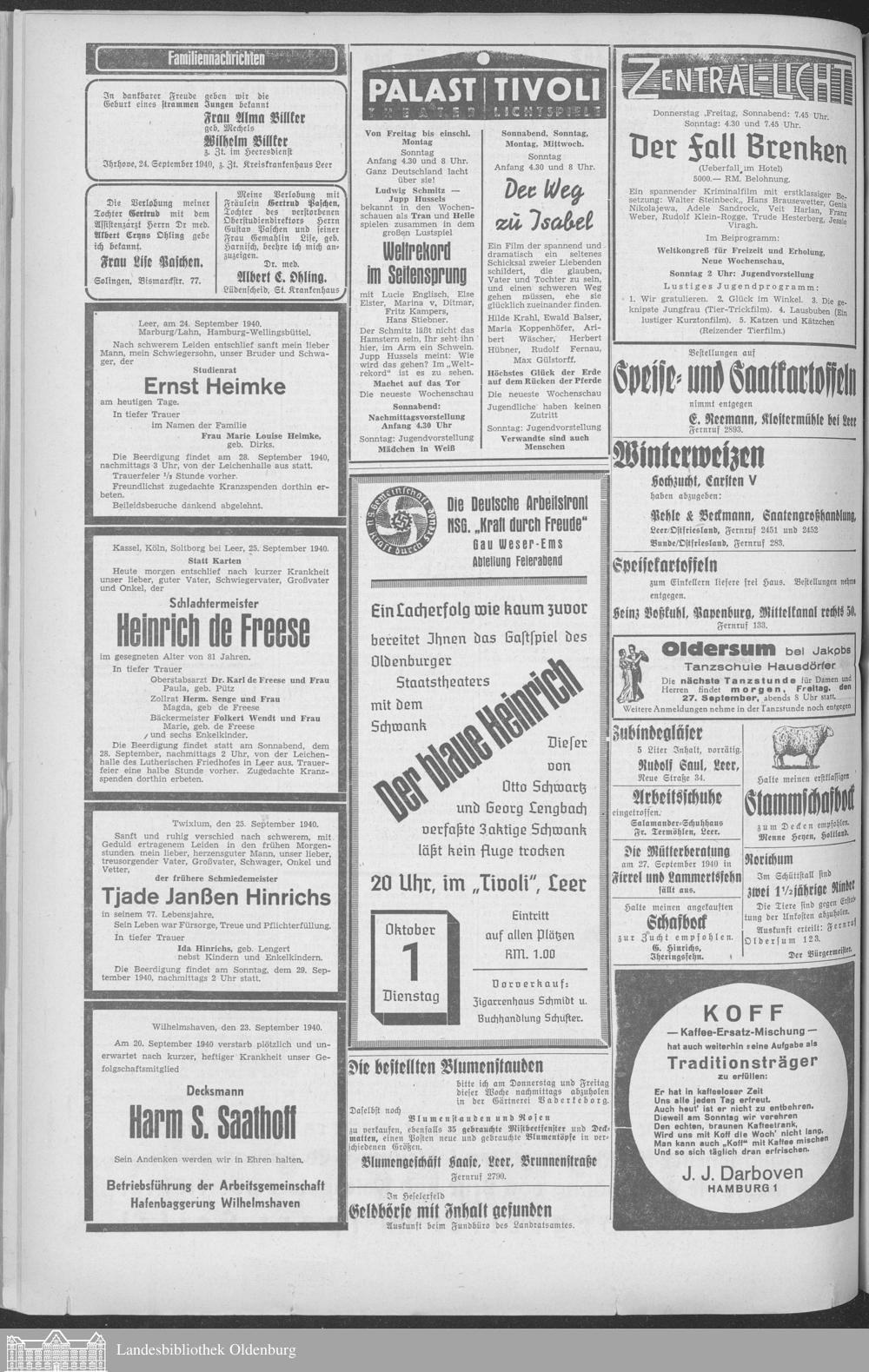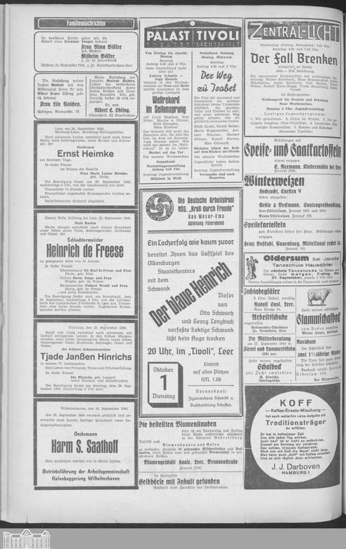 Ostfriesische Tageszeitung. Ausgabe Leer. 1938-1942