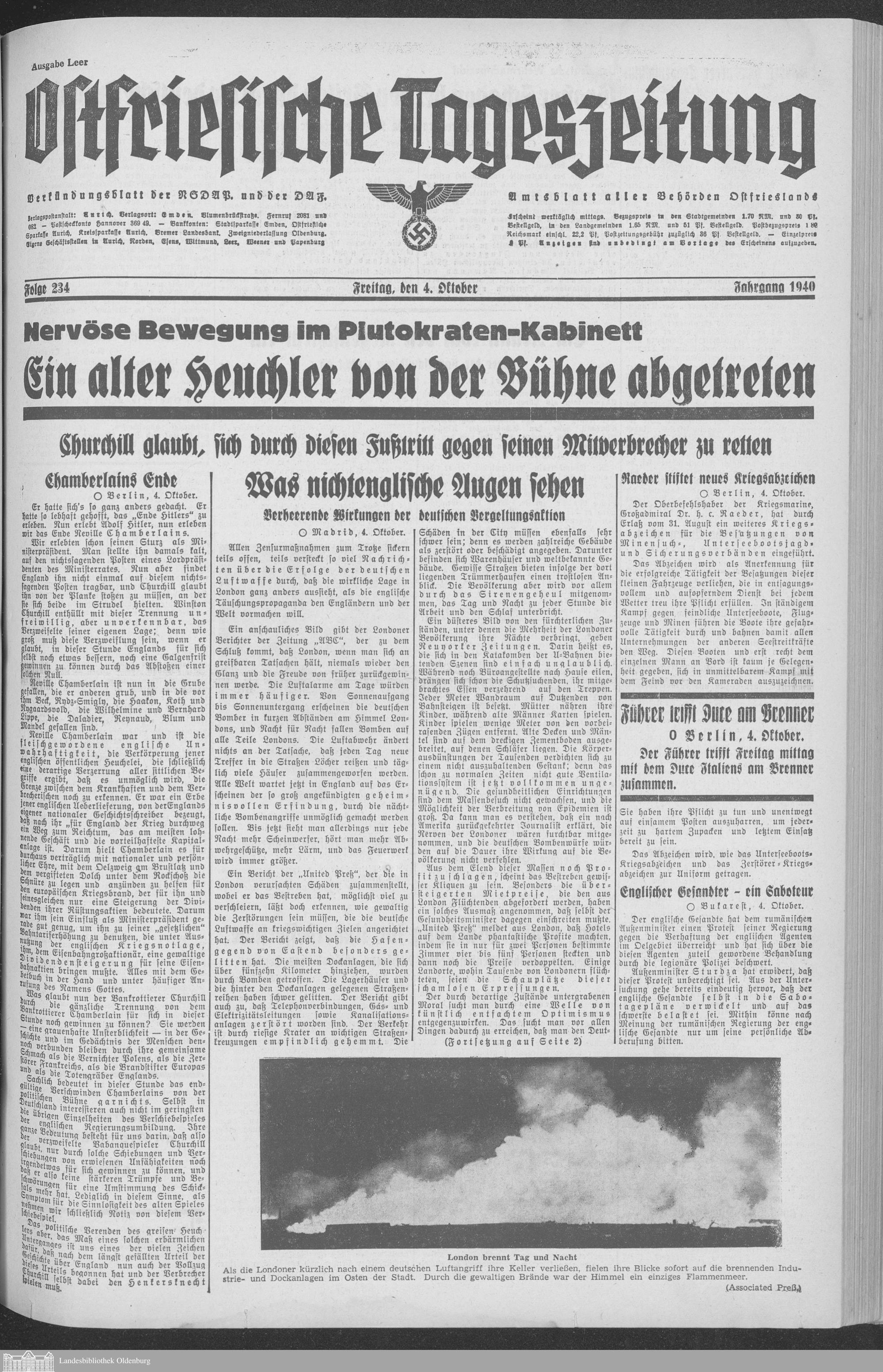 Ostfriesische Tageszeitung. Ausgabe Leer. 1938-1942
