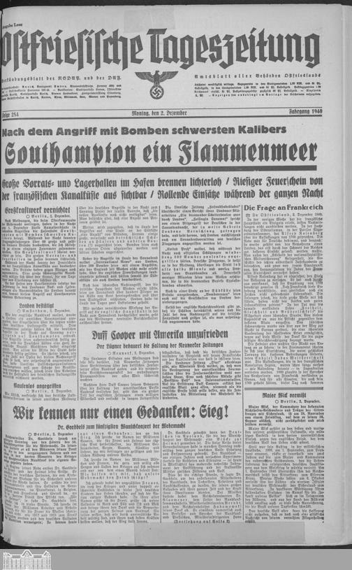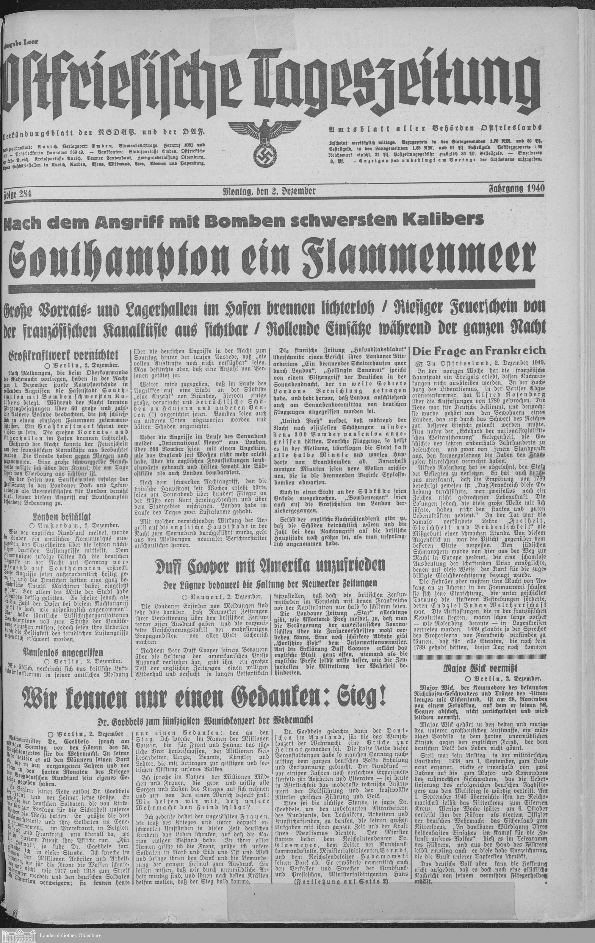 Ostfriesische Tageszeitung. Ausgabe Leer. 1938-1942