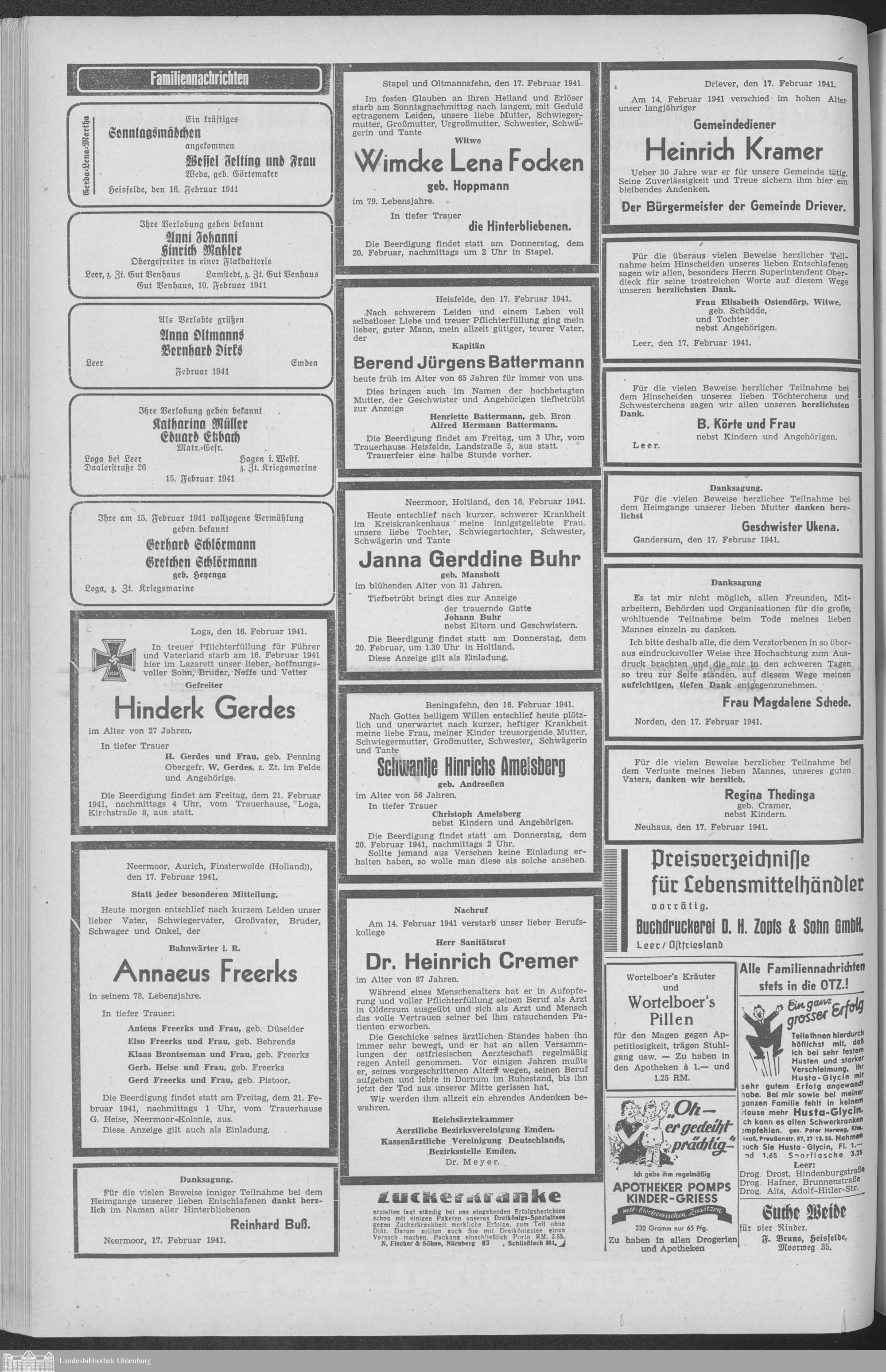 Ostfriesische Tageszeitung. Ausgabe Leer. 1938-1942
