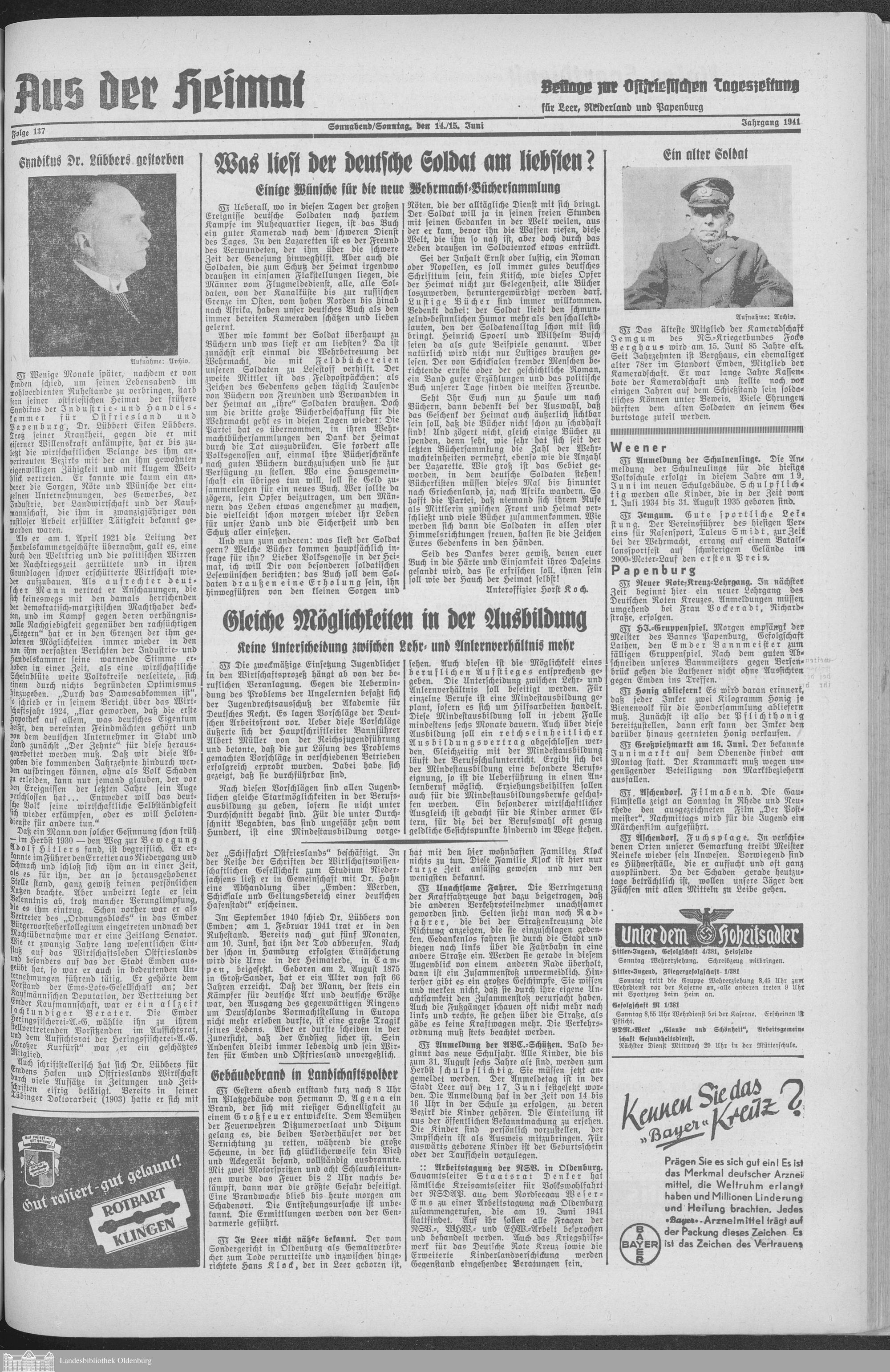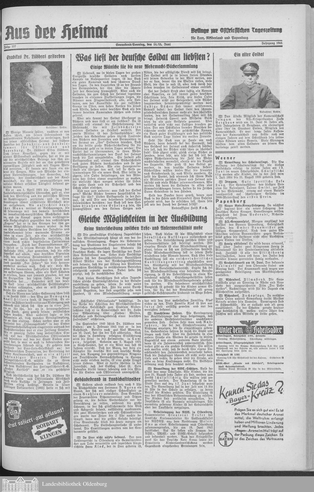 Ostfriesische Tageszeitung. Ausgabe Leer. 1938-1942