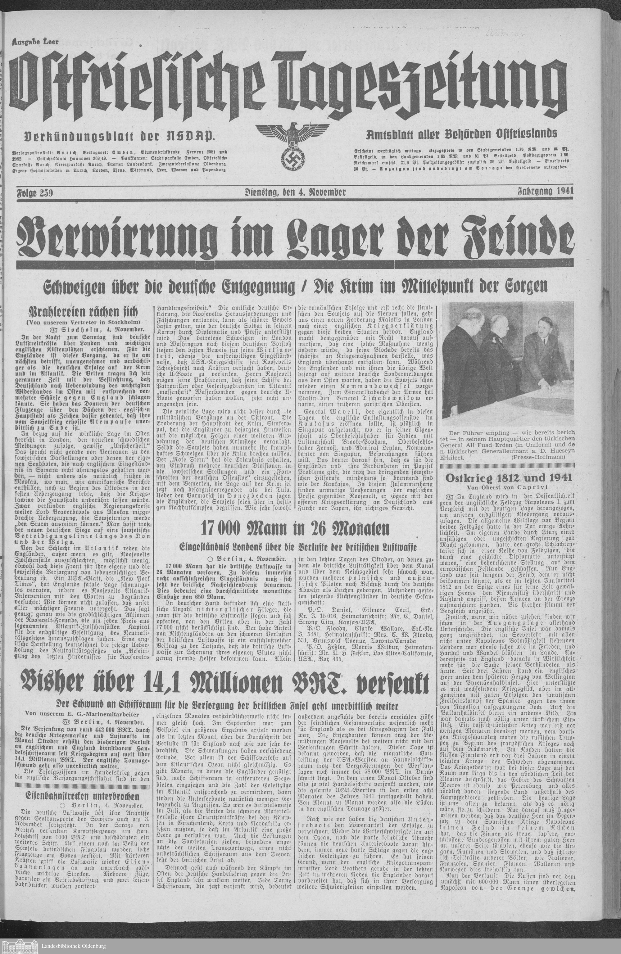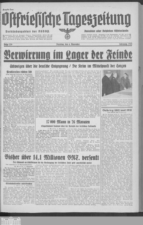 Ostfriesische Tageszeitung. Ausgabe Leer. 1938-1942