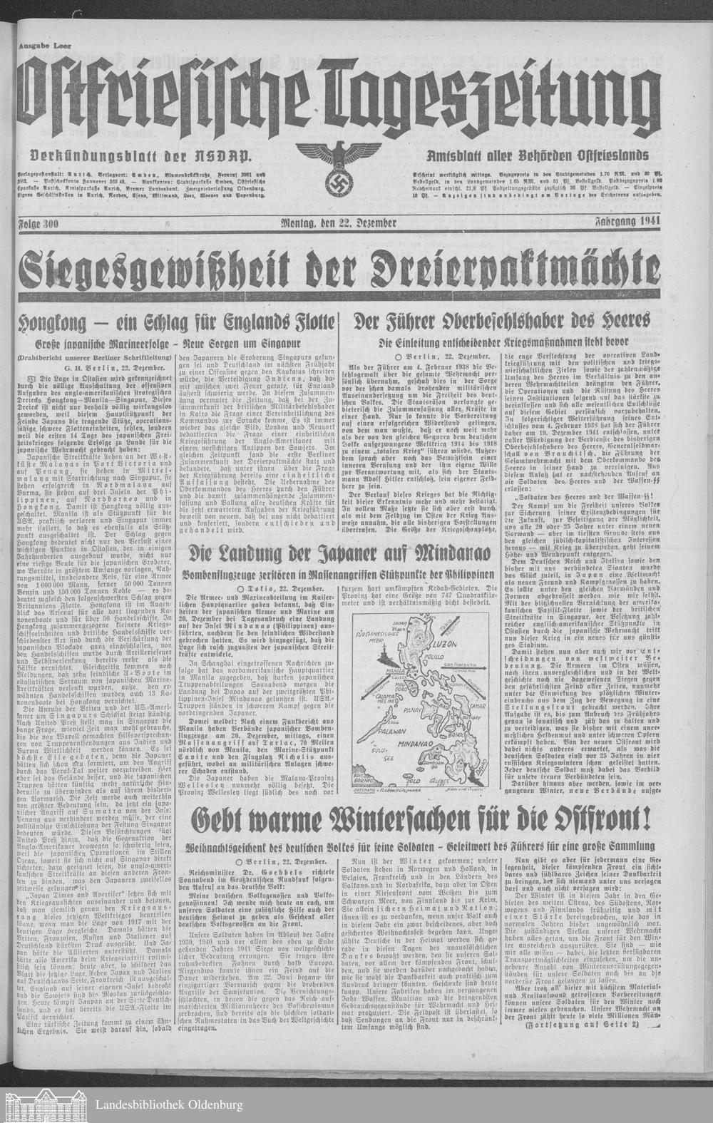 Ostfriesische Tageszeitung. Ausgabe Leer. 1938-1942