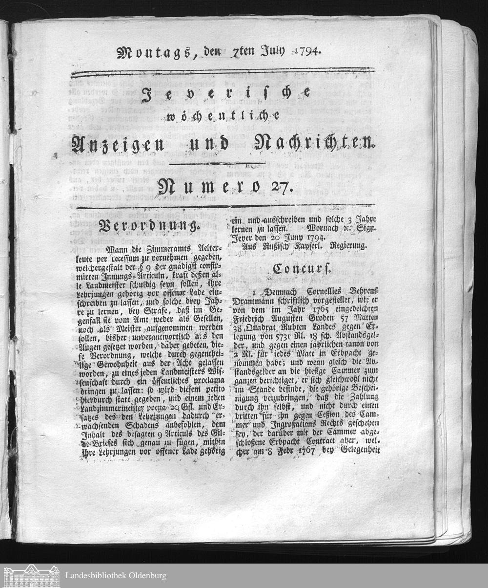 Jeverische wöchentliche Anzeigen und Nachrichten. 1791-1811