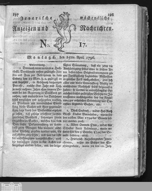 Jeverische wöchentliche Anzeigen und Nachrichten. 1791-1811