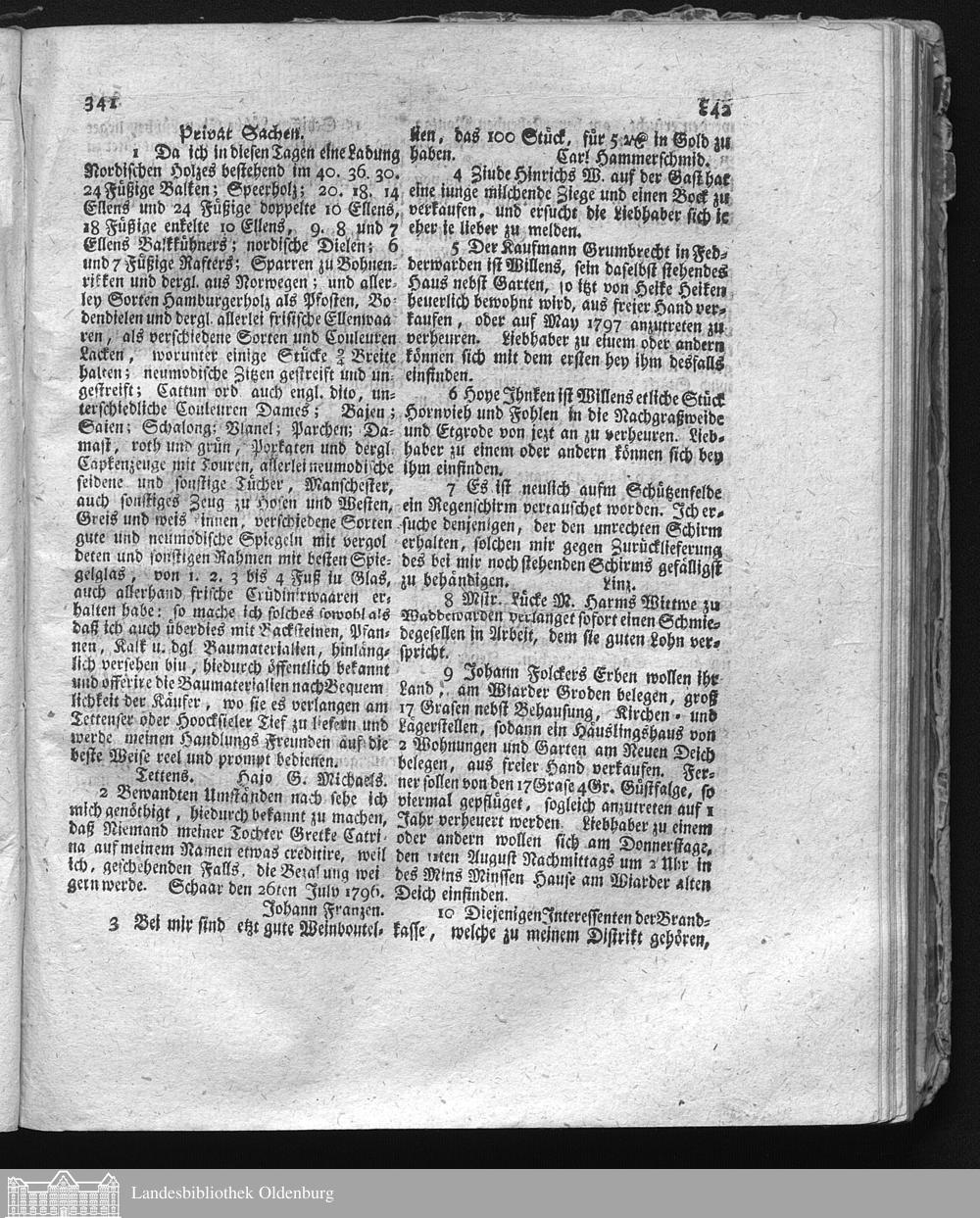 Jeverische wöchentliche Anzeigen und Nachrichten. 1791-1811
