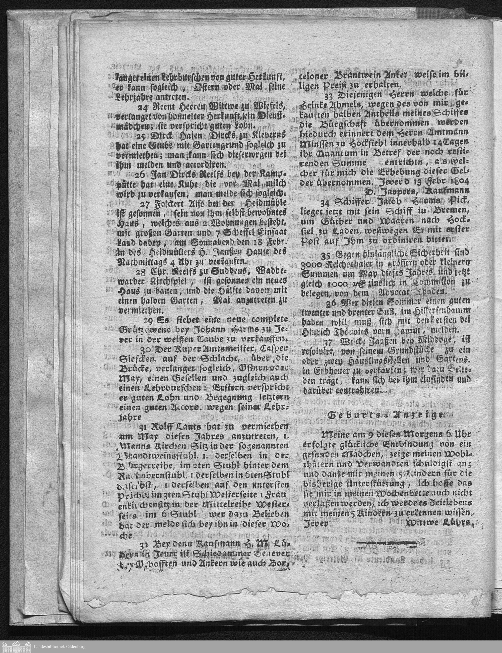 Jeverische wöchentliche Anzeigen und Nachrichten....