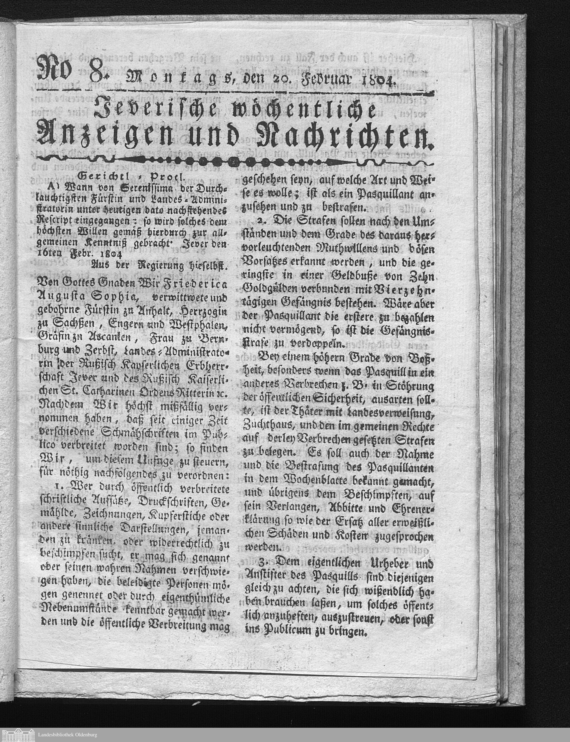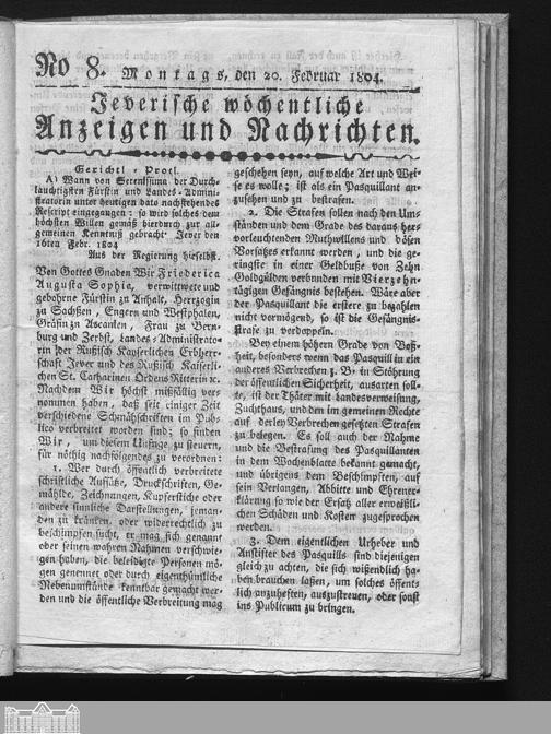 Jeverische wöchentliche Anzeigen und Nachrichten. 1791-1811