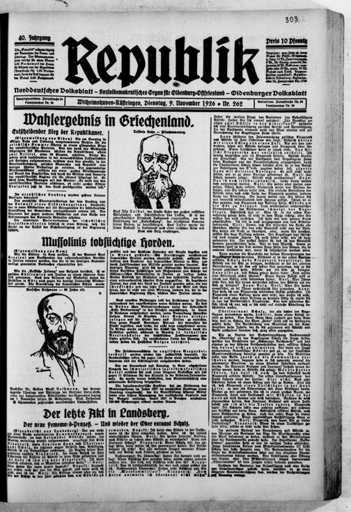 Republik : norddeutsches Volksblatt ; sozialdemokratisches Organ für Oldenburg und Ostfriesland