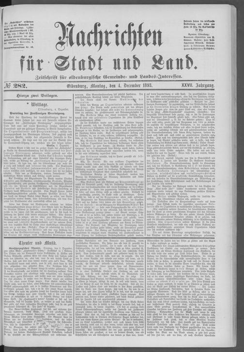 Nachrichten für Stadt und Land : Oldenburger Zeitung für Volk und Heimat
