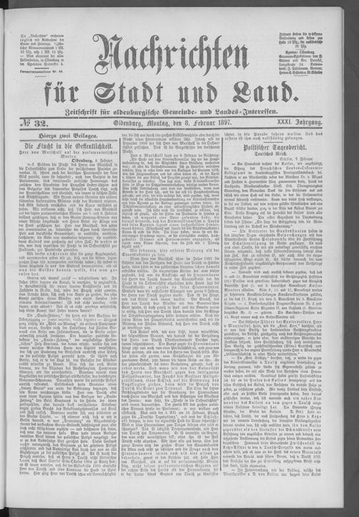 Nachrichten für Stadt und Land : Oldenburger Zeitung für Volk und Heimat