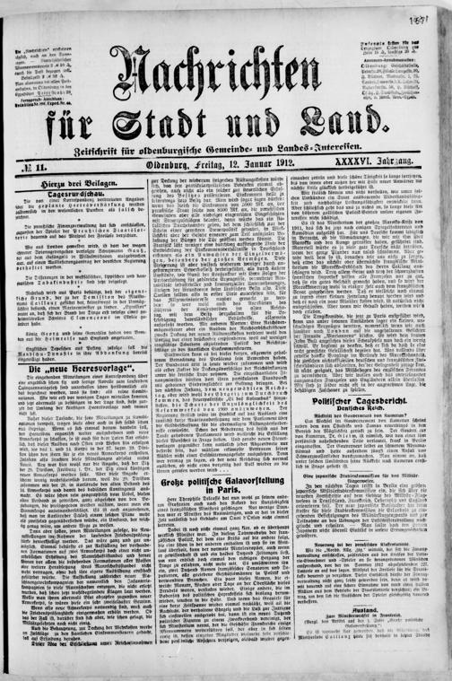 Nachrichten für Stadt und Land : Oldenburger Zeitung für Volk und Heimat