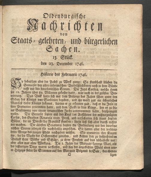 Oldenburgische Nachrichten von Staats-, gelehrten, und buergerlichen Sachen
