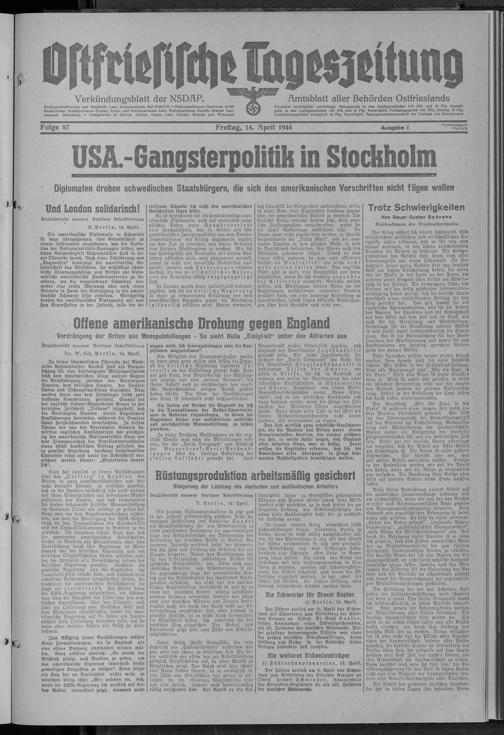 Ostfriesische Tageszeitung : Verkündungsblatt der NSDAP : Amtsblatt aller Behörden Ostfrieslands