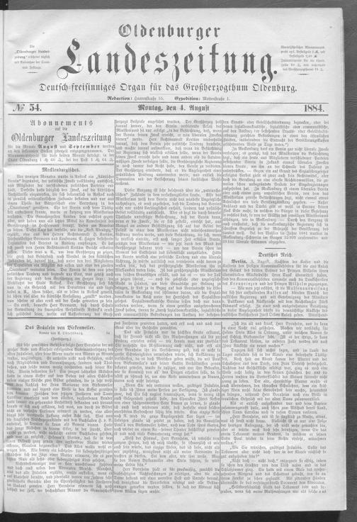 Oldenburger Landeszeitung : deutsch-freisinniges Organ für das Großherzogthum Oldenburg