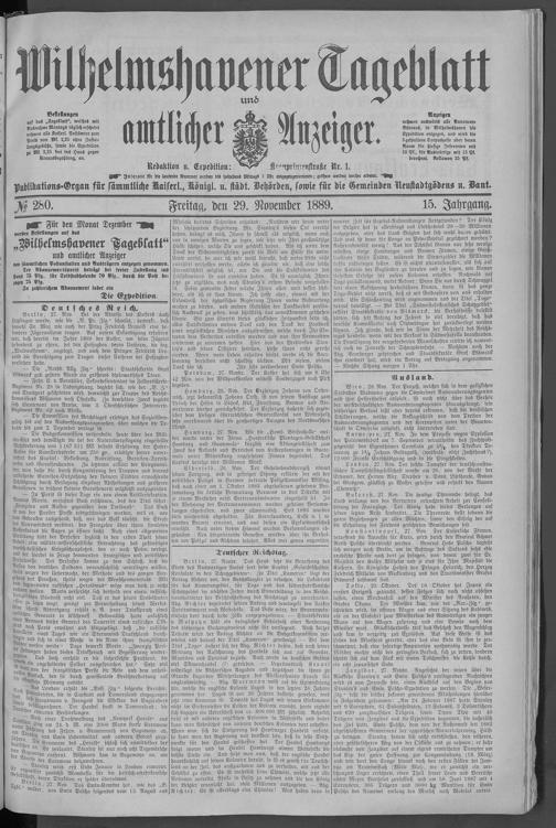 Wilhelmshavener Tageblatt und amtlicher Anzeiger : amtliches Organ für die kaiserl., königl. und städtischen Behörden, für die Gemeinden Bant, Heppens und Neuende, sowie die Ämter und Amtsgerichte Jever und Rüstringen