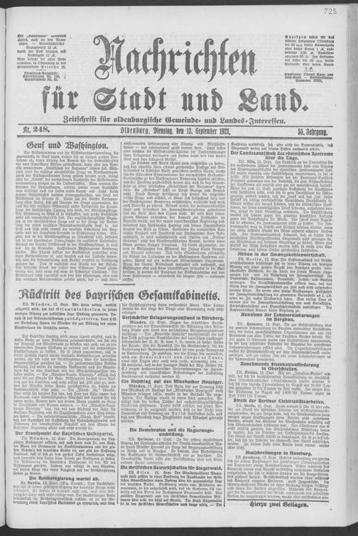 Nachrichten für Stadt und Land : Oldenburger Zeitung für Volk und Heimat