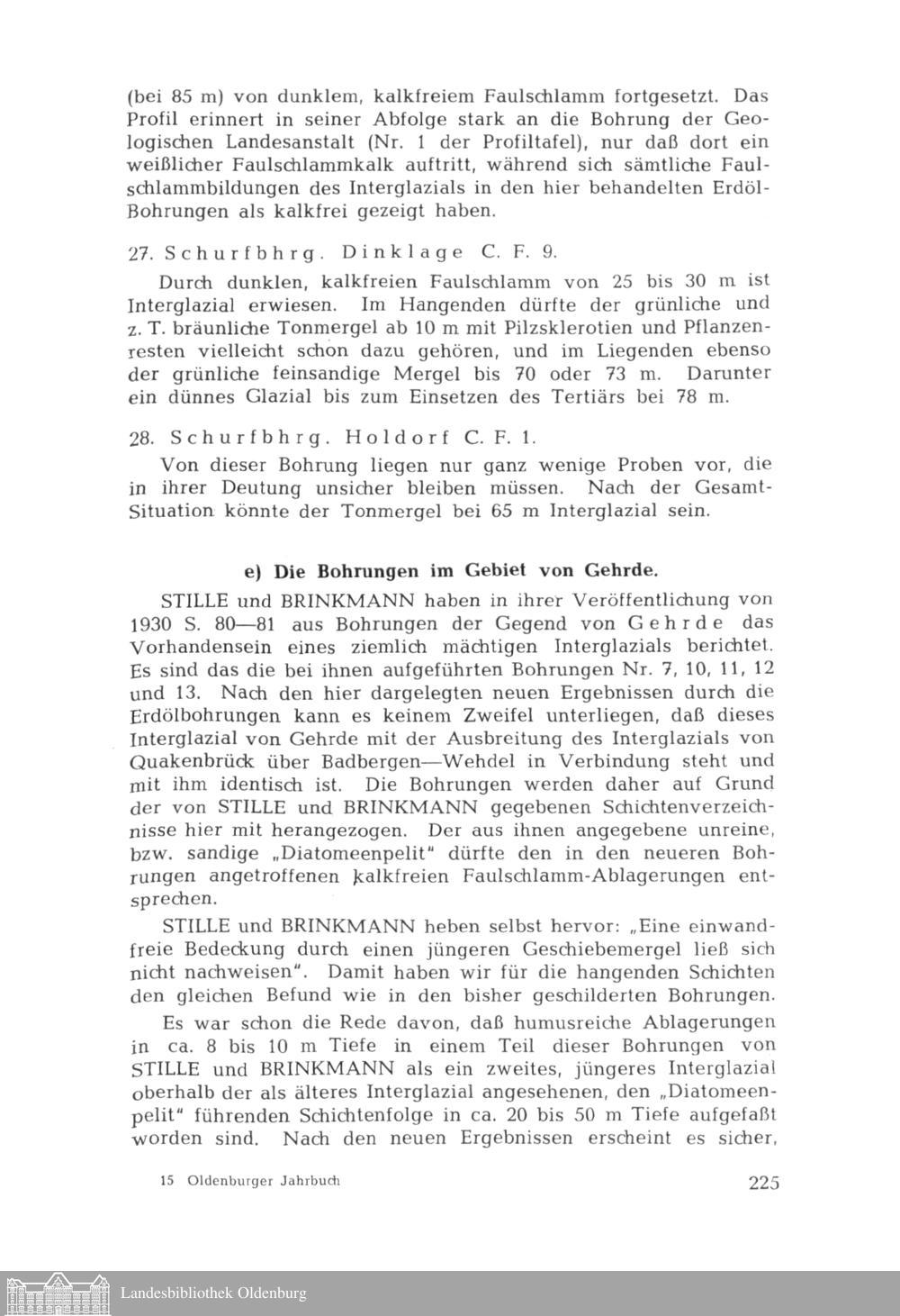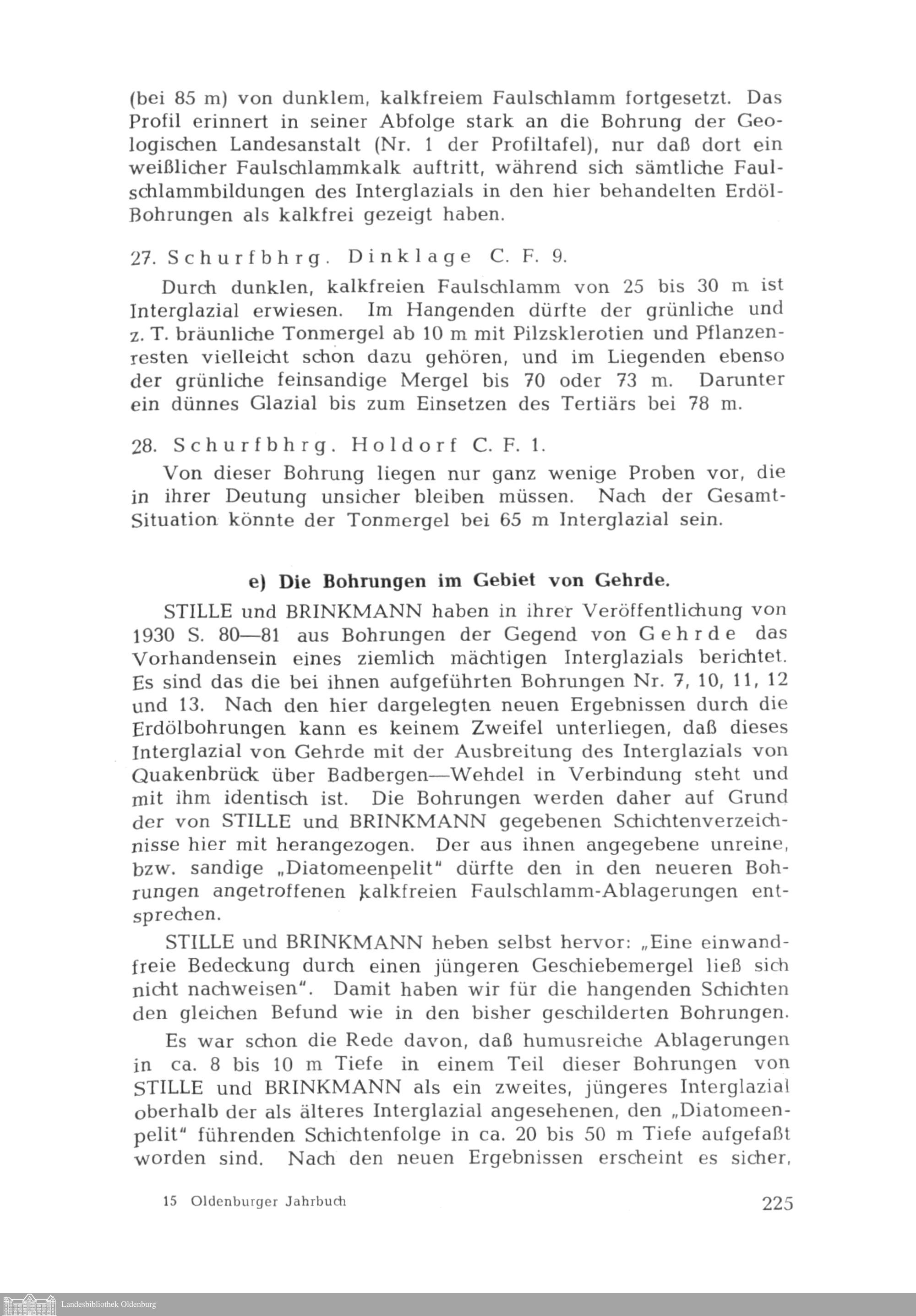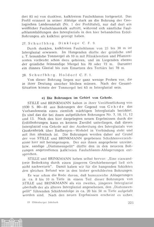 Zur Kenntnis des Interglazials von Osnabrück und seiner Verbreitung im Artland und Südoldenburg von Wolfgang Hartung (dazu eine Textfigur und 1 Profiltafel im Anhang)