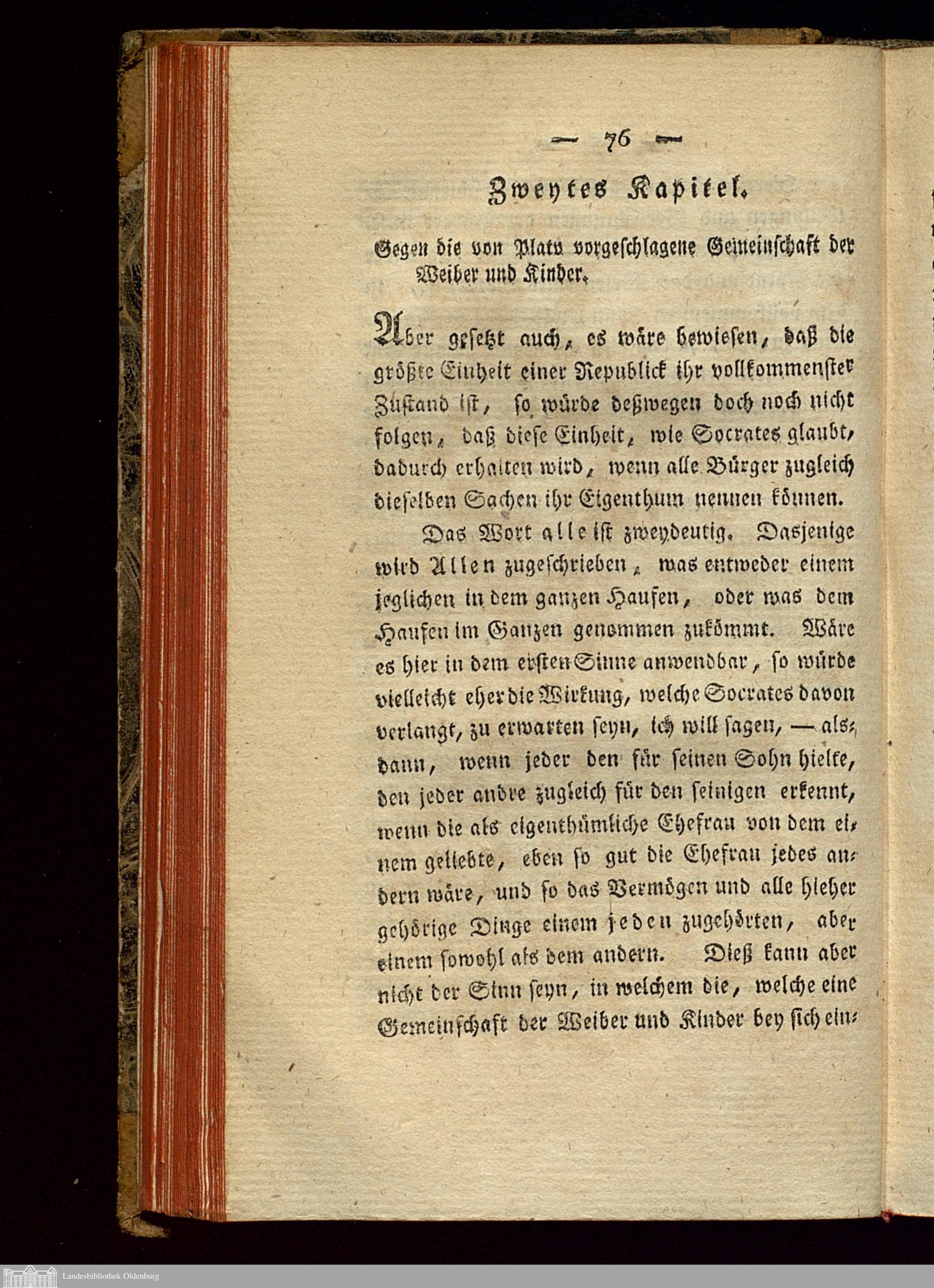 Zweytes Kapitel. Gegen die von Plato vorgeschlagene Gemeinschaft der Weiber und ...