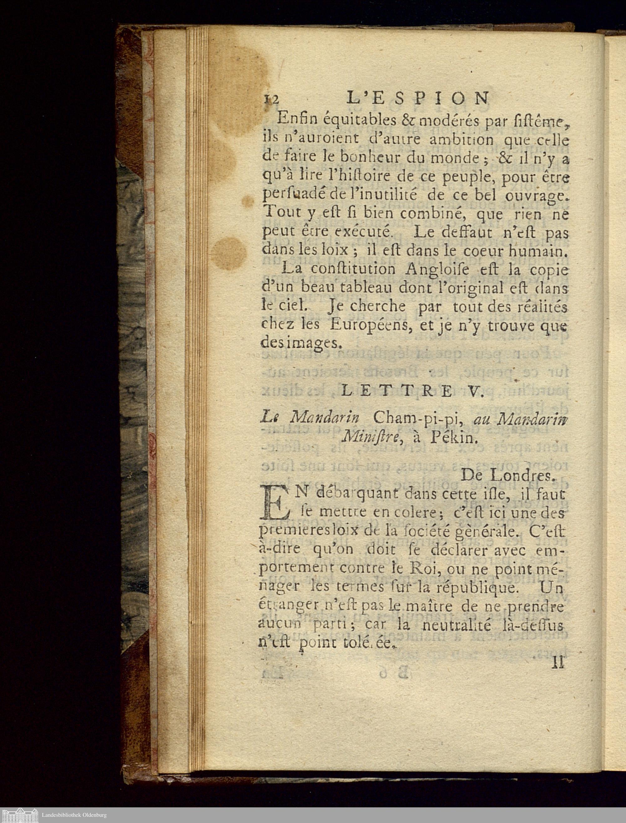 Lettre V. Le Mandarin Cham-pi-pi, au Mandarin Ministre, à Pékin.