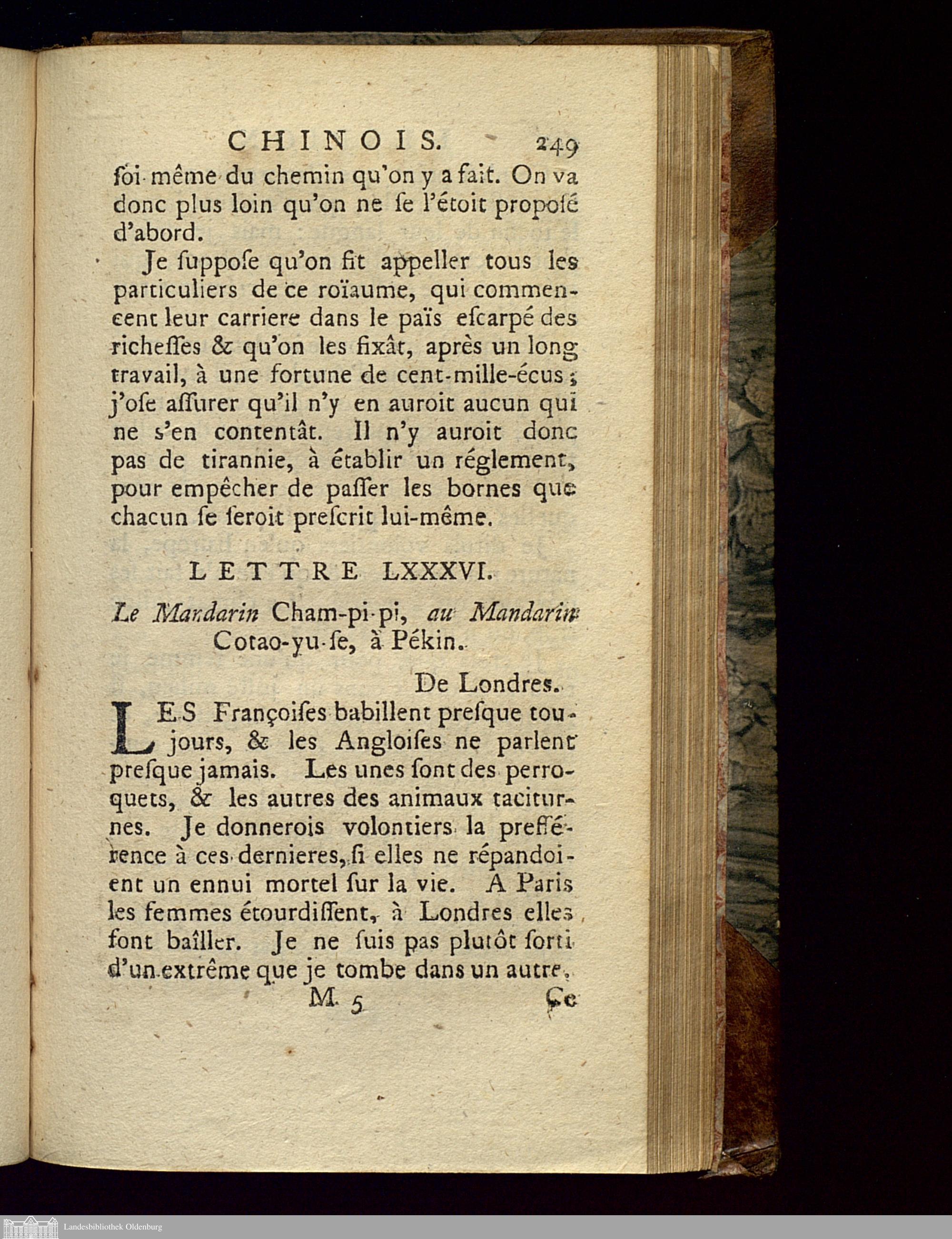Lettre LXXXVI. Le Mandarin Cham-pi-pi, au Mandarin Cotao-yu-se, à Pékin.