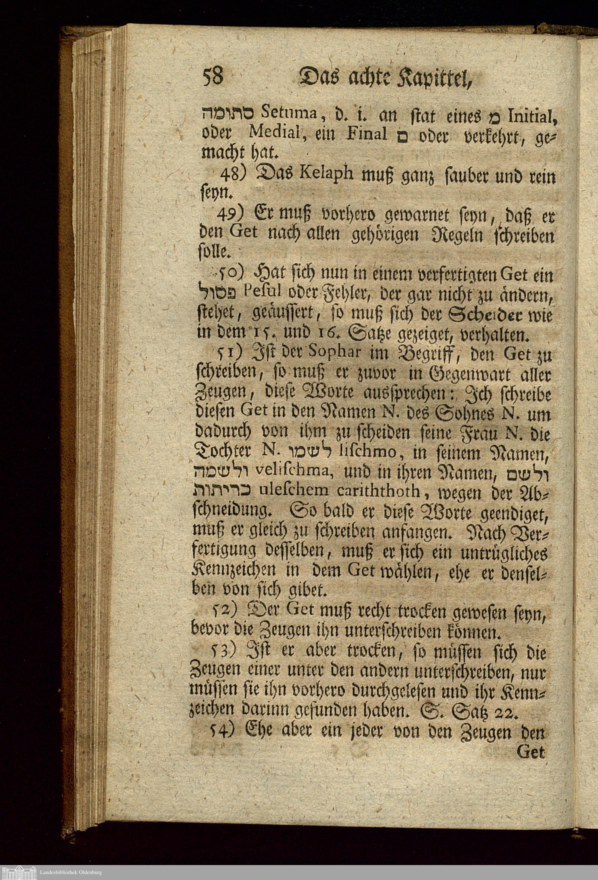 Das sechste Kapittel, von der Verheirathung der Juden.
