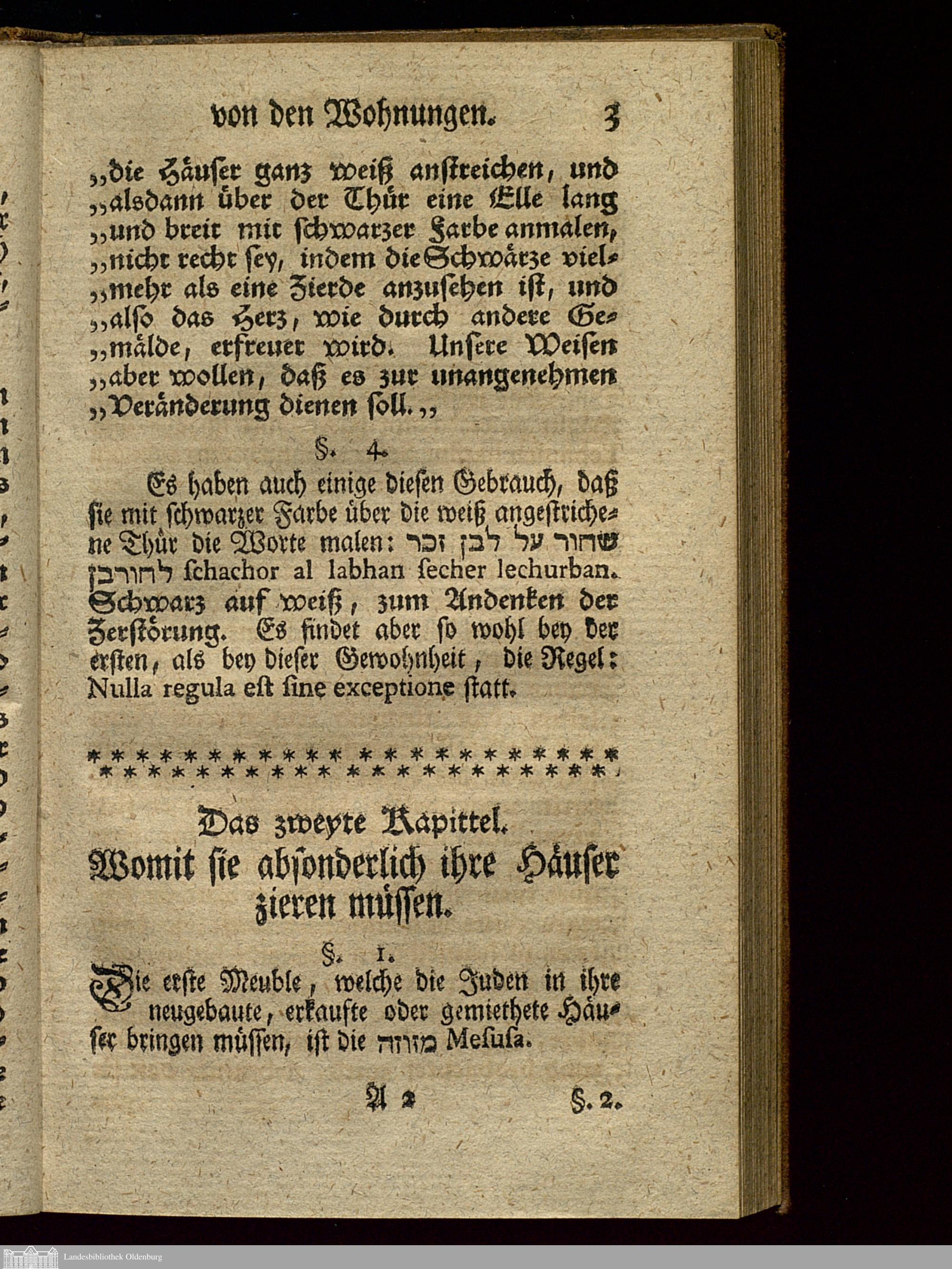 Der erste Abschnitt. Was die Juden bey ihren Wohnungen, Gärten, Feldern, Weinbergen,...