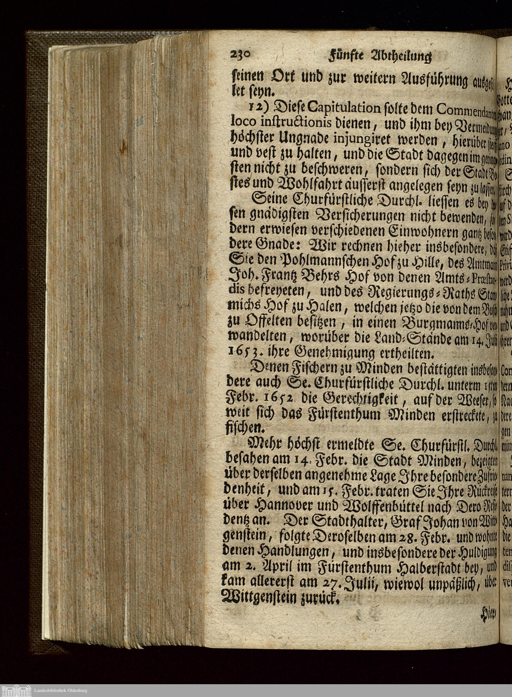 Abtheilung 5 (1748) Darinnen kürtzlich erzehlet wird, Was sich Unter der Regierung sechs Bischöffe und des Chur-Hauses Brandenburg, Vom Jahr 1554. bis 1713. Im Stifft Minden merckwürdiges zugetragen; Aus beglaubten Nachrichten zusammen gebracht : Nebst Dreyen zur Mindischen Historie dienenden Monumentis / H.A. Meinders, quondam ICti Ravensbergensis