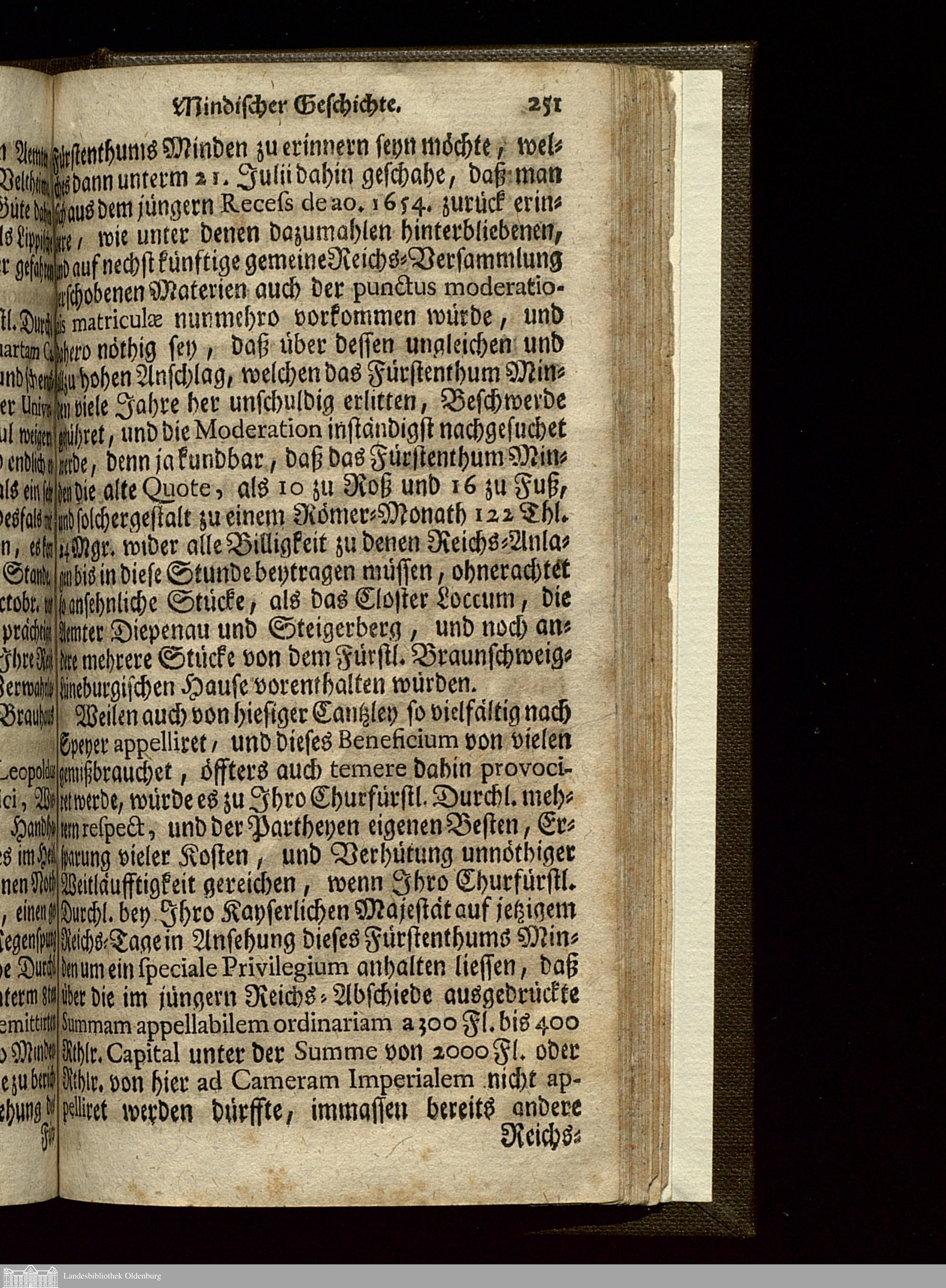 Abtheilung 5 (1748) Darinnen kürtzlich erzehlet wird, Was sich Unter der Regierung sechs Bischöffe und des Chur-Hauses Brandenburg, Vom Jahr 1554. bis 1713. Im Stifft Minden merckwürdiges zugetragen; Aus beglaubten Nachrichten zusammen gebracht : Nebst Dreyen zur Mindischen Historie dienenden Monumentis / H.A. Meinders, quondam ICti Ravensbergensis