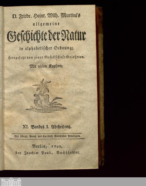Allgemeine Geschichte der Natur, in alphabetischer Ordnung. XI. Bandes I. Abtheilung....