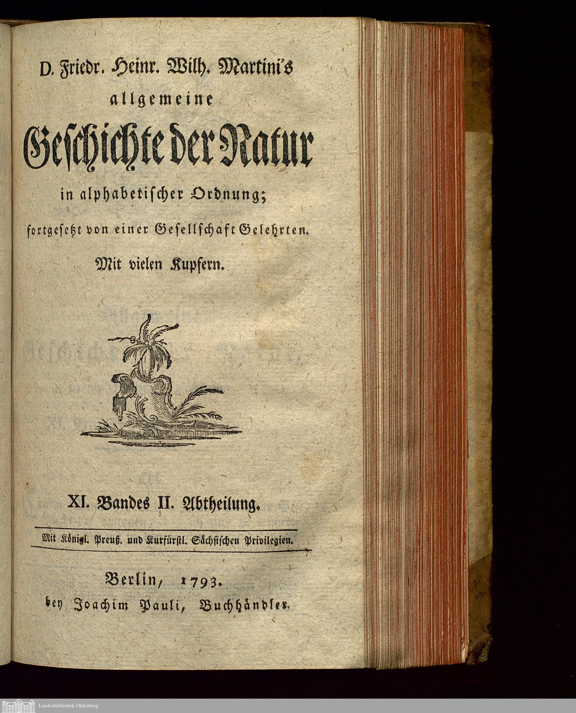 Allgemeine Geschichte der Natur, in alphabetischer Ordnung. XI. Bandes II. Abtheilung....