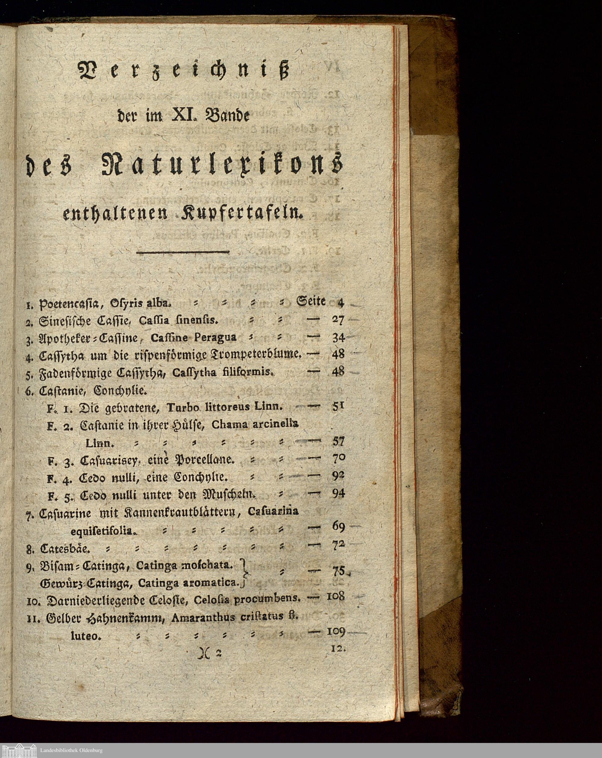 Verzeichniß der im XI. Bande des Naturlexikons enthaltenen Kupfertafeln.