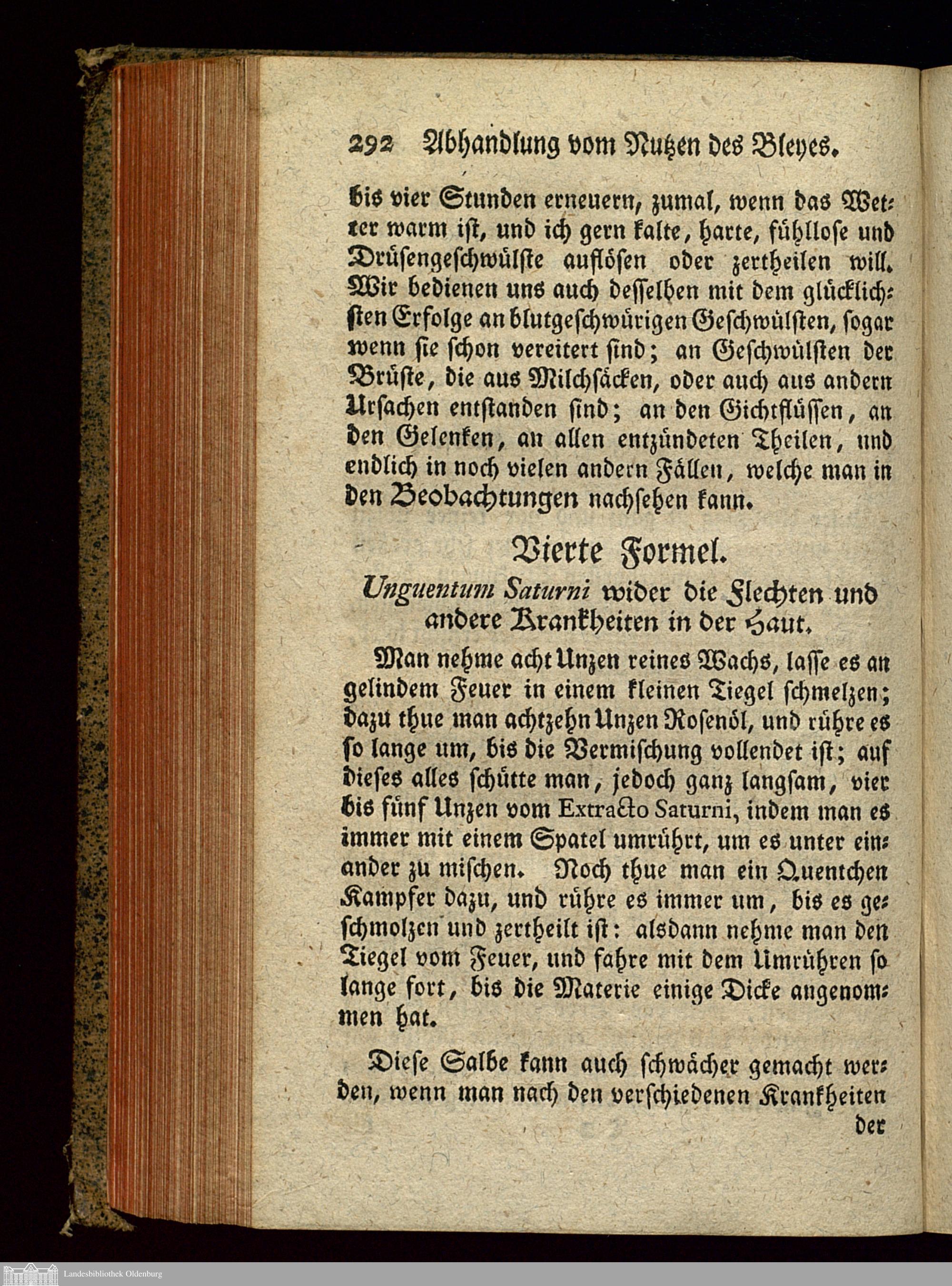 Vierte Formel. Unguentum Saturni wider die Flechten und andere Krankheiten in der...