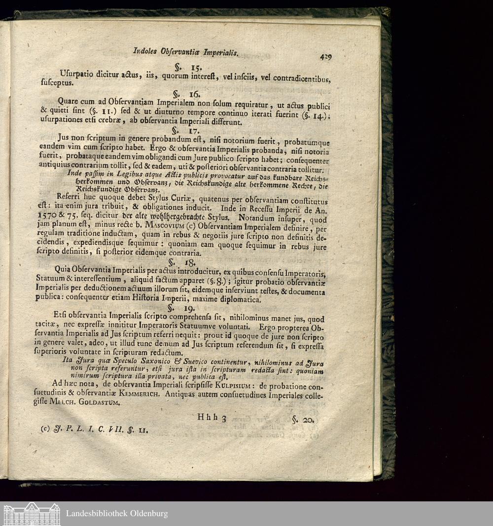 [Joannis Ulrici L.B. De Cramer, Cameræ Imperialis Assessoris, Observationum Juris...