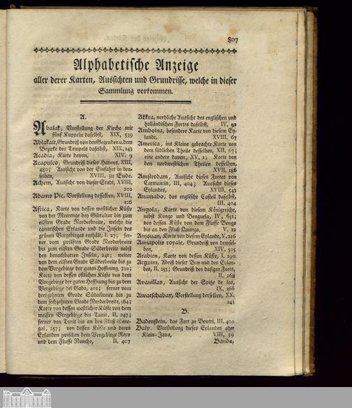 Alphabetische Anzeige aller derer Karten, Aussichten und Grundrisse, welche in dieser...