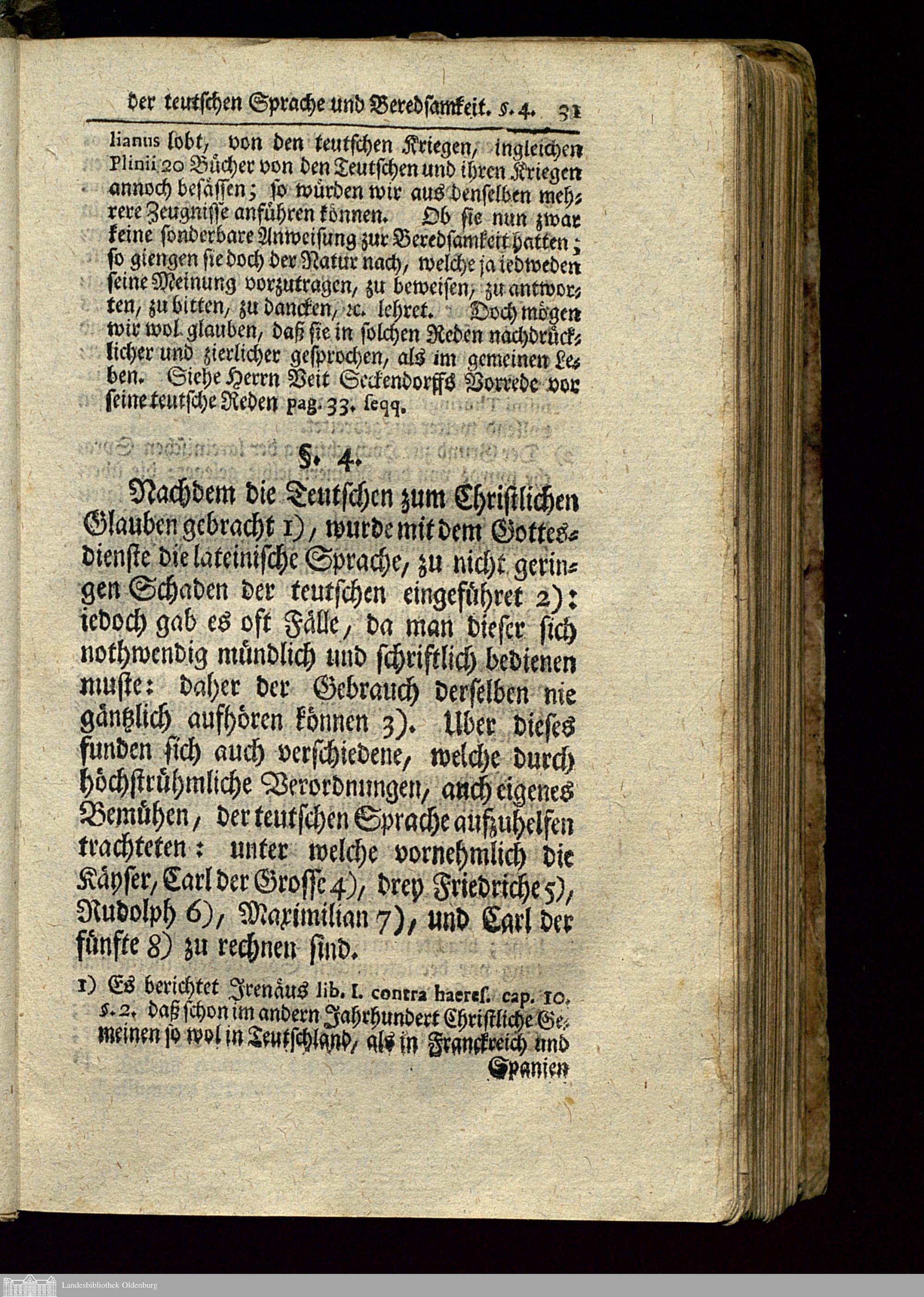 Das I. Capitel. Von der Historie der Teutschen Sprache und Beredsamkeit.