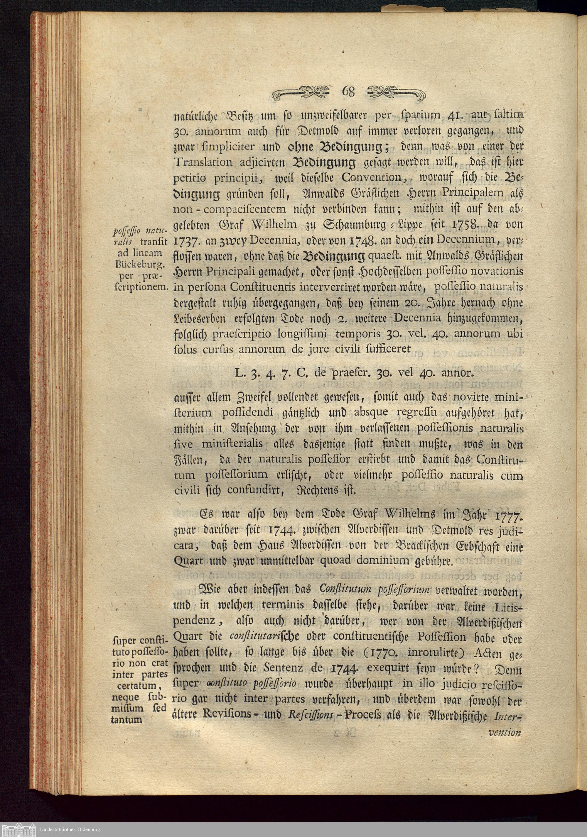 An die Römisch Kaiserliche auch zu Germanien, Jerusalem ... Königliche Majestät Allerunterthänigster Libellus Restitutionis In Integrum sive Expositio humillima Causalium Supplicae d. 28. Nov. 1782. exhibitae proclemme Restitutione in integrum contra sententiam paritoriam d. 21. Oct. 1779. latam, ob Documenta noviter reperta atque ex generali Praetoris clausula: si qua justa mihi causa etc. decernenda, unacum nova Deductione Juris et facti ex novis Documentis et fundamentis eruta et reconcinnata; juncto petito legali, cum salvatione salvandorum : Jmpetrantischen Anwalds in Sachen des Regierenden Herrn Grafen Philip Ernst, zu Schaumburg-Lippe, Jmpetranten, contra den Herrn Grafen Simon August, zu Lippe-Detmold nunc, auf dessen Absterben die Vormundschaft, Jmpetraten : die praetense usurpirte und praeripirte vormalig Lippe-Brackische Aemter Blomberg und Schieder betreffend : cum Adjunctis von Lit. A.-H. und Nro. 1-51. et sub-adjunctis Ee. Fa. Gg. et Nro. 41 b. 41 c. 41 d. 41 e. / [Johann Christoph Erich Springer]