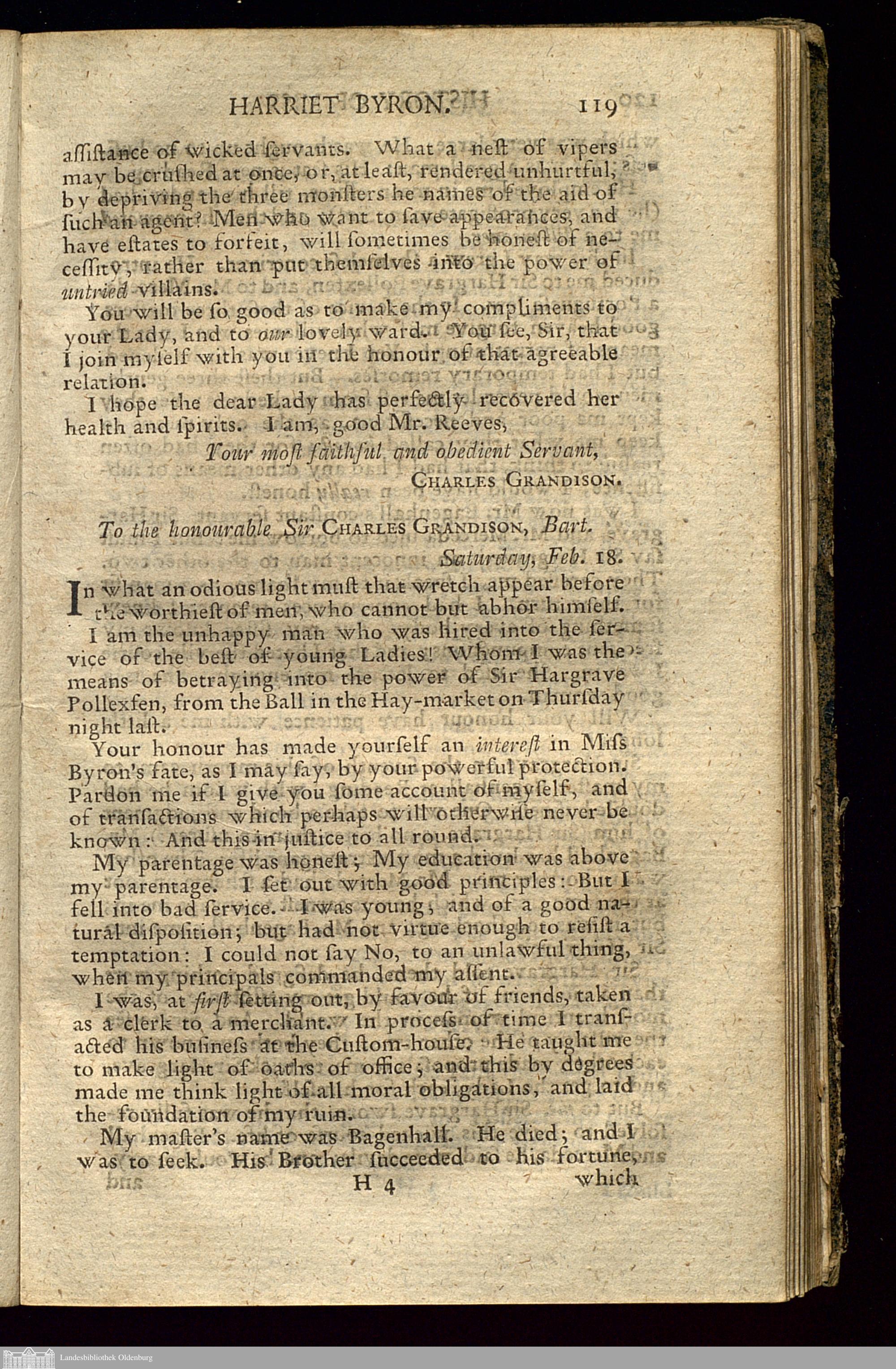 Account of Sir Charles Grandison's rescuing Miss Harriet Byron.