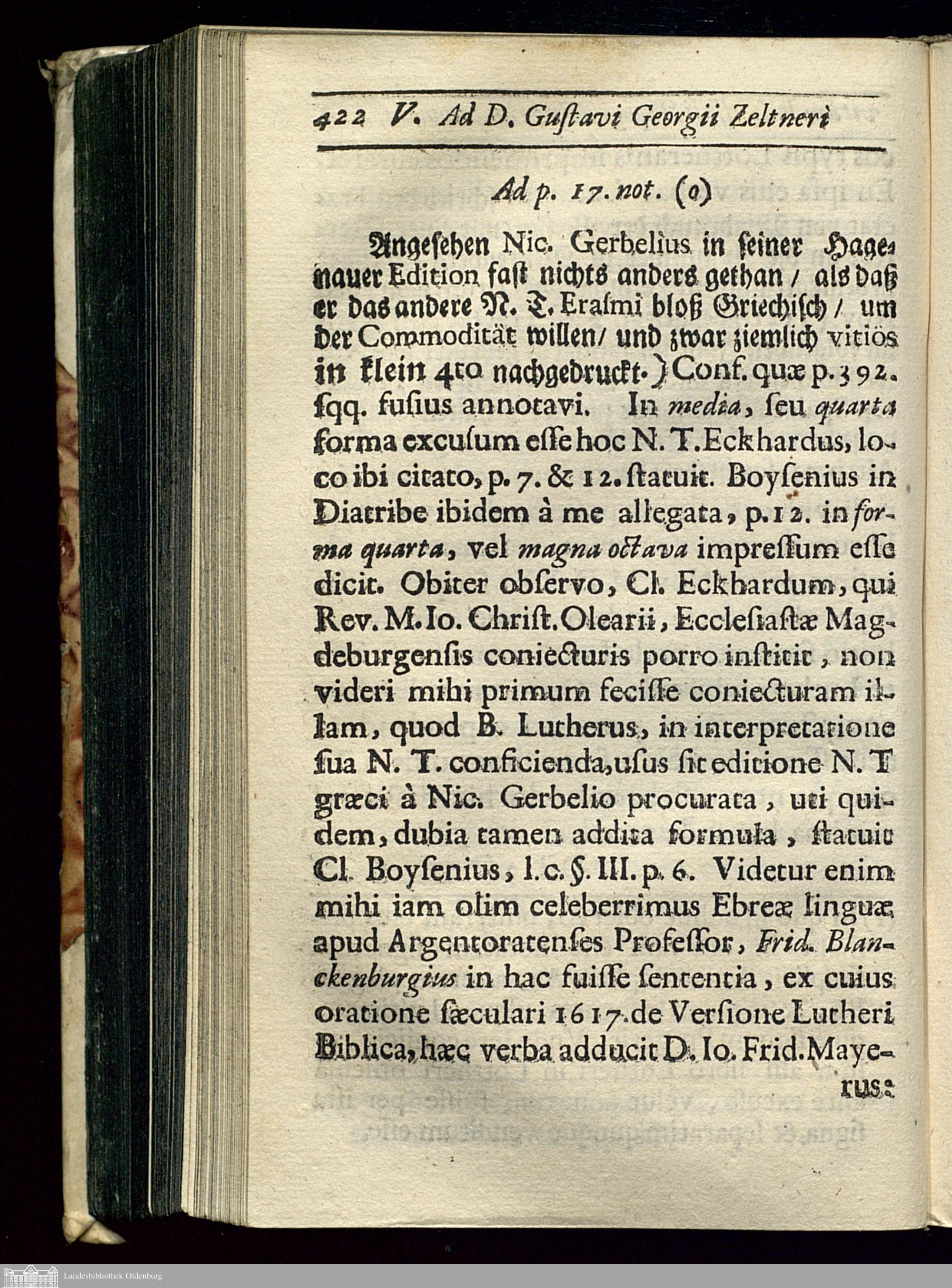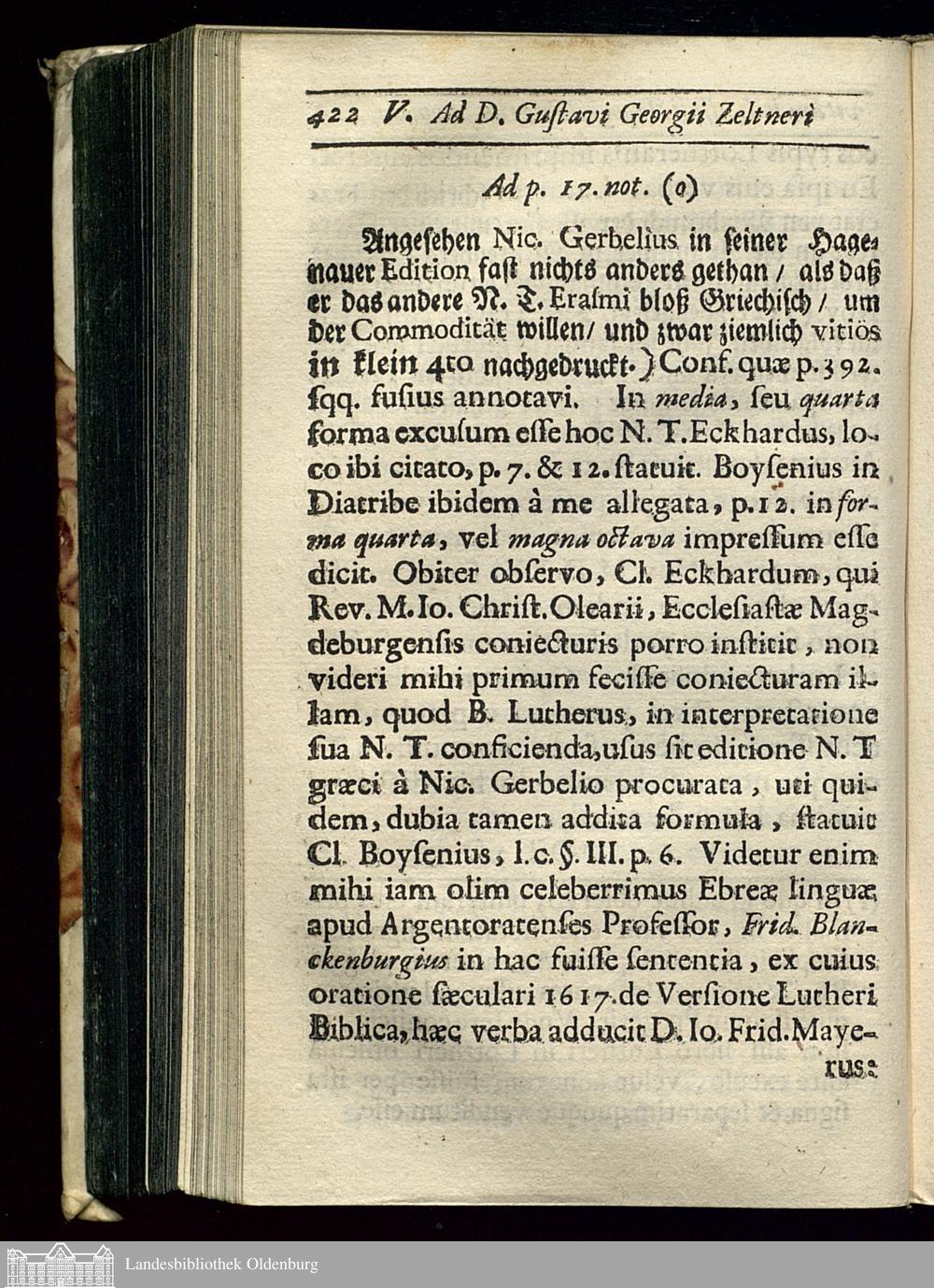 V. Ad Virum summe Rever. Amplissimum Eruditissimumque, Dn. D. Gvst. Georg. Zeltnervm,...
