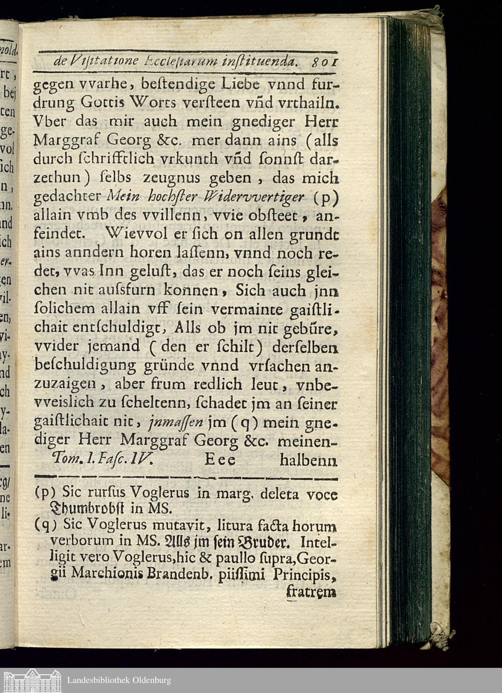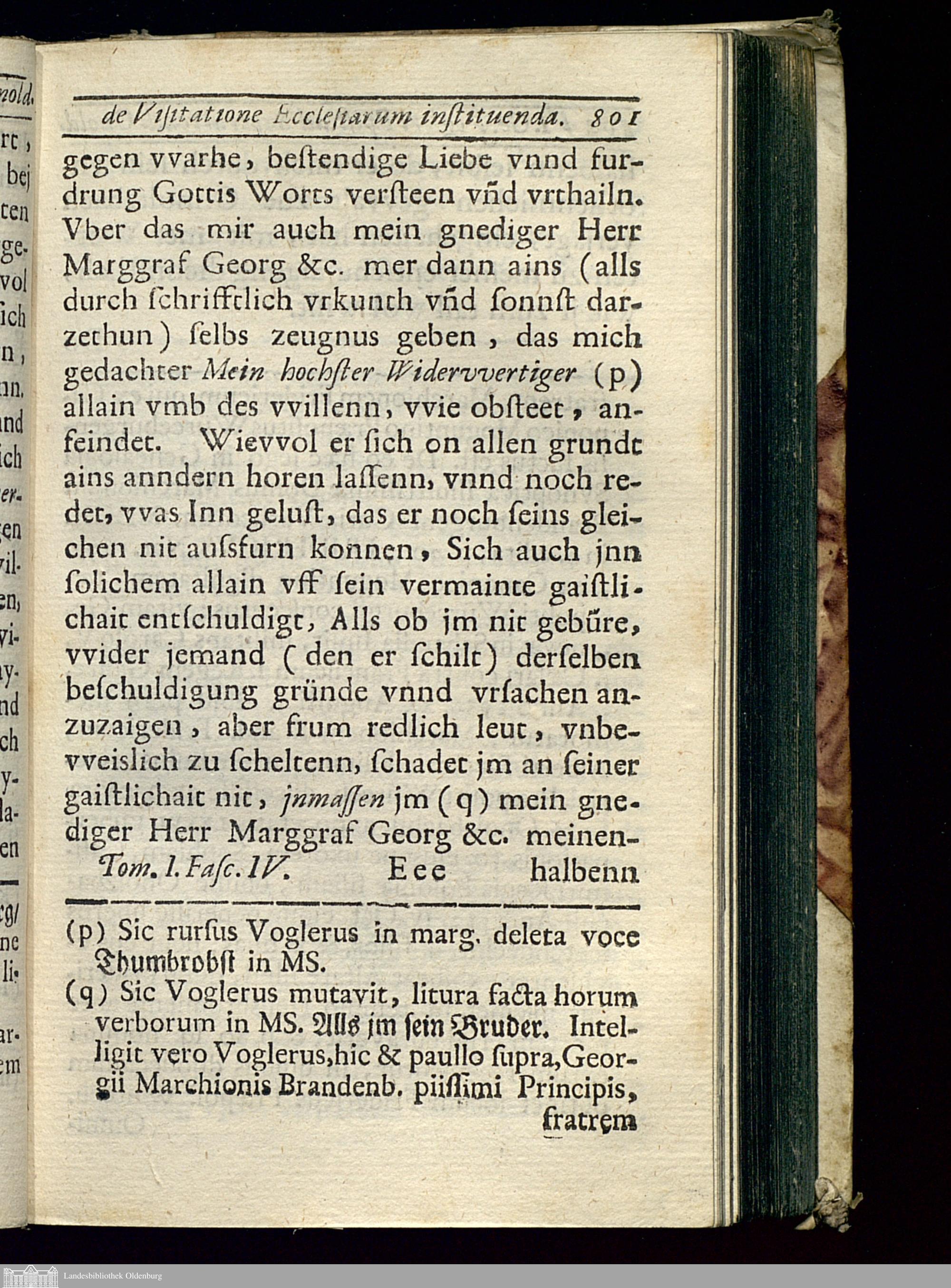 VI. Georgii Vogleri Epistola (*) Ad Svperattendentes Onoldinos, De Visitatione Ecclesiarvm...