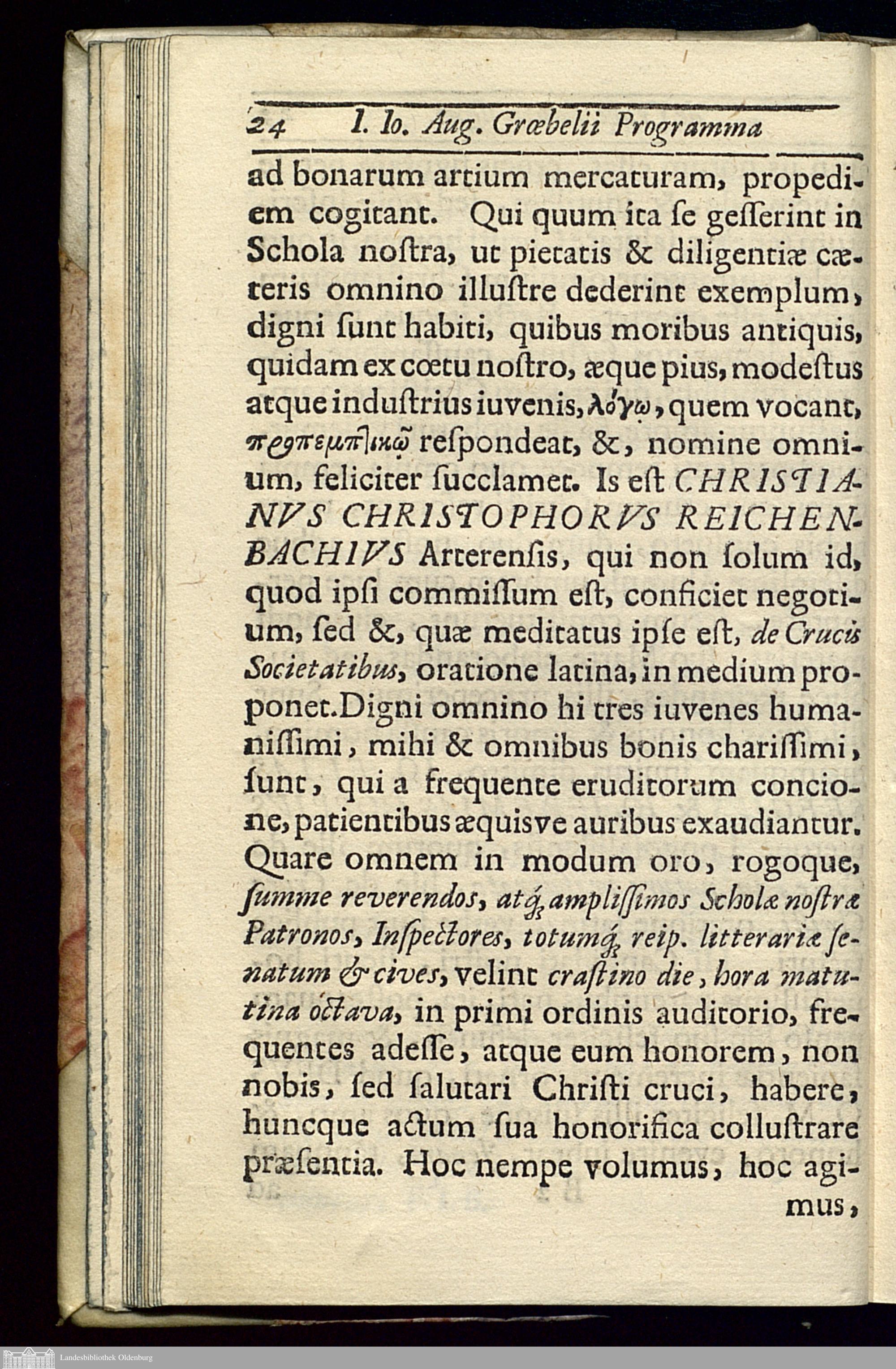 I. Crvx Salvtis Signvm, Actui Oratorio a.d. III. Id. April. CIƆIƆCCXXIX. instituendo more solito praemissum ab Io. Avgvstino Groebelio Lyc. Rect. (*) Longosalissae Formis Heergarthii, D.S.L.E.Q.T.