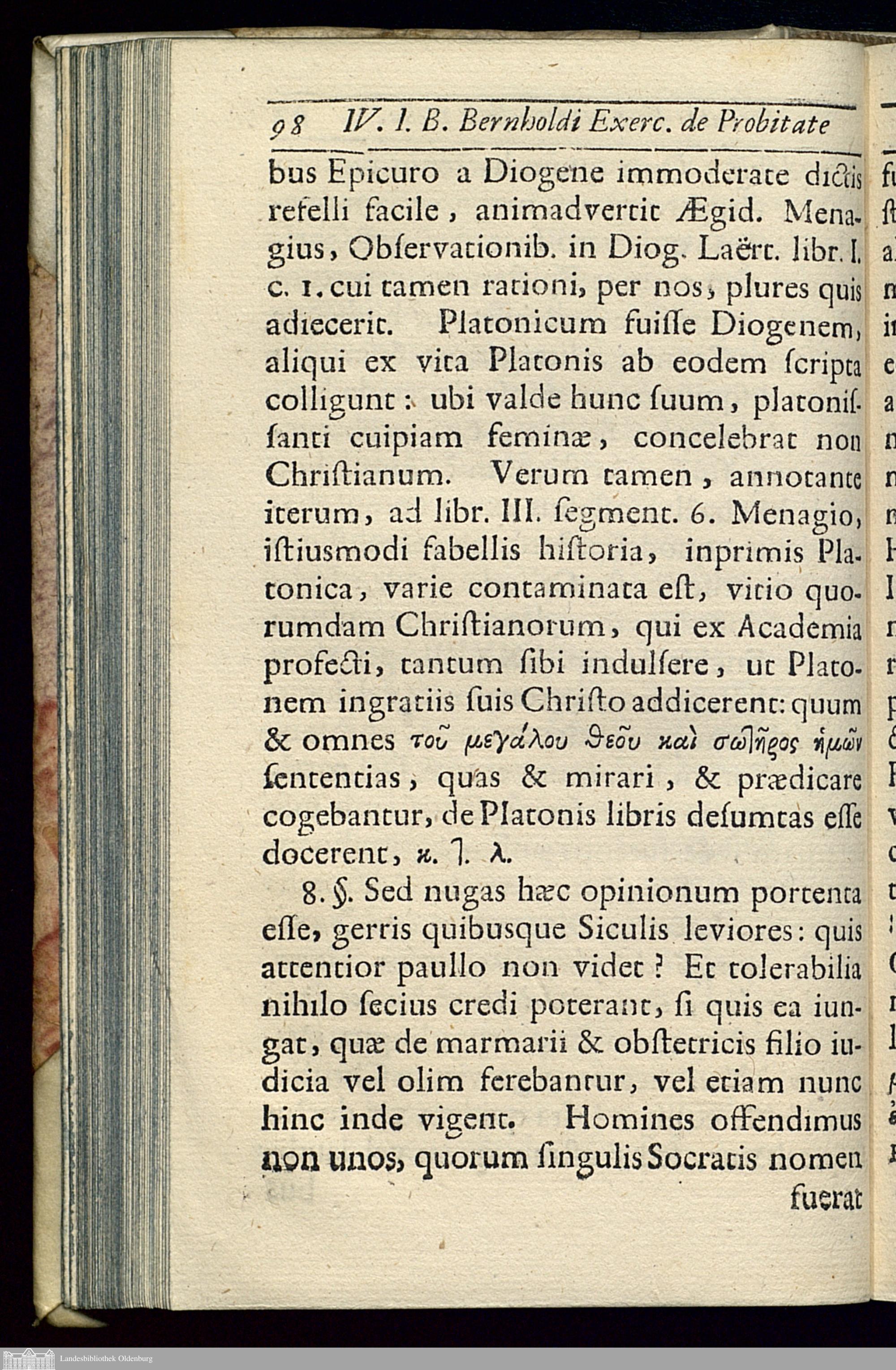 IV. De Probitate Socratis sive Modica Sive Nvlla Exercitamentvm, Ad. Num. XVII. Vitembergicae super Philospha Lingua habitae A.C. CIƆIƆCCX. M. Novemb. Disputationis suae scripsit M. Io. Baltasar Bernholdvs, Francvs.