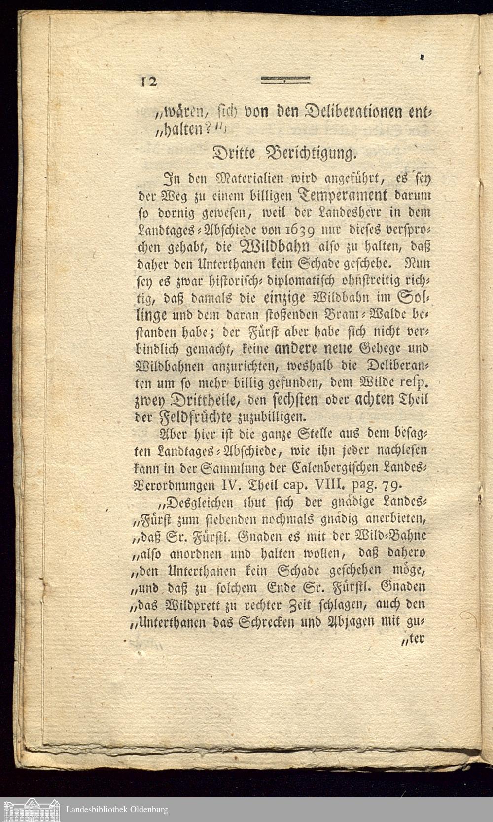 [Beytrag zu den Materialien eines Normal-Gesetzes wegen Erstattung des Wildpret-Schadens im Hannöverischen]