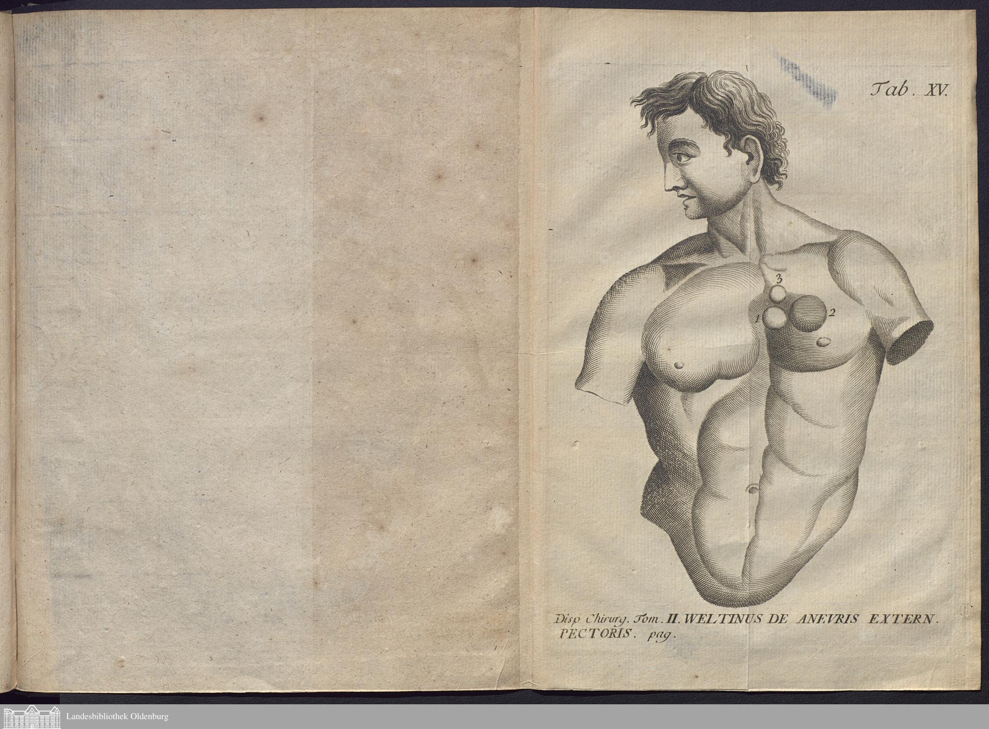 Illustration: Tab. XV. Disp. Chirurg. Tom. II. Weltinus De Anevris Extern Pectoris....